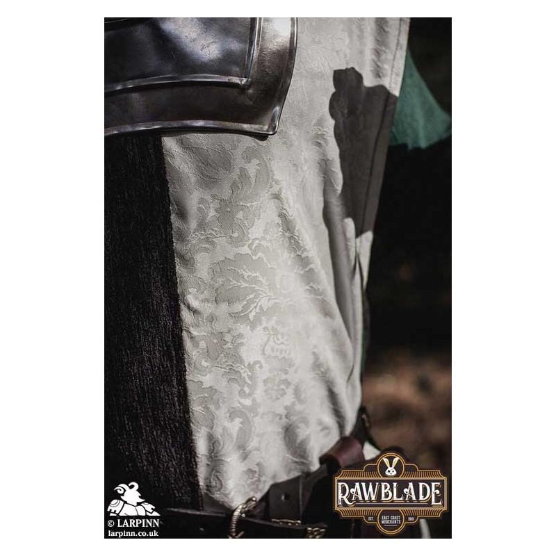 Introducing the Harbinger Tabard, a captivating medieval garment designed for knights and warriors. The Harbinger Tabard is not only a functional garment but also a statement piece. Whether you're participating in LARP, cosplay or theatre, this tabard instantly transforms you into a noble knight, adding an air of chivalry and prestige to your character. With its versatile design and high-quality construction, the Harbinger Tabard can be paired with various armor pieces, chainmail, or other medieval accessories, allowing you to customize your look and create a unique character persona. Unleash your inner knight and immerse yourself in the world of medieval adventures with the Harbinger Tabard. Embrace the allure of damasc pattern fabric and experience the timeless charm of medieval fashion.