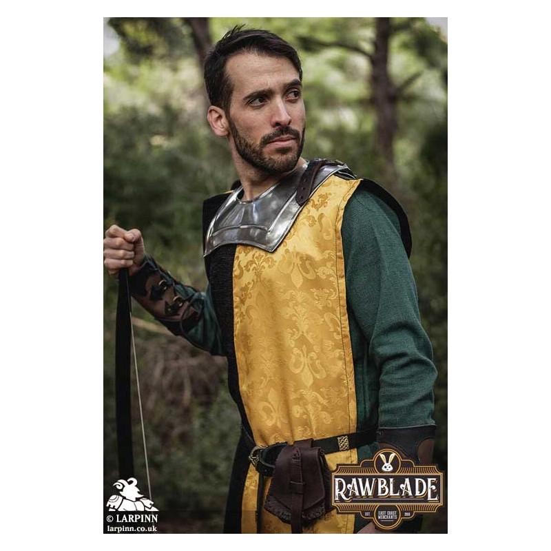 Made from premium cotton fabric and adorned with high-quality damasc pattern fabric, this tabard exudes elegance and authenticity. Crafted with meticulous attention to detail, the Harbinger Tabard features a stunning damasc pattern fabric that adds a touch of regality to your ensemble. The intricate designs and rich colors of the fabric create a visually striking appearance, capturing the essence of medieval aesthetics. Constructed from breathable and durable cotton fabric, this tabard ensures comfort and freedom of movement during intense battles and adventures. Its lightweight nature allows for easy wear and helps to keep you cool during long days at medieval events or Renaissance fairs.