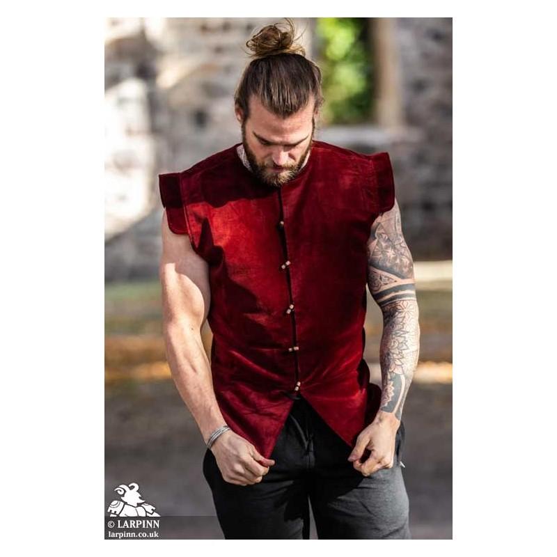 Embrace your noble attire with the Heinrich Doublet Vest, perfect for that Dawnish look. This velvet jerkin is sleeveless, making it a versatile piece of kit for layering your costume or keeping cool in warmer weather. The shaping is flattering to the figure with toggles to close the doublet at the front.