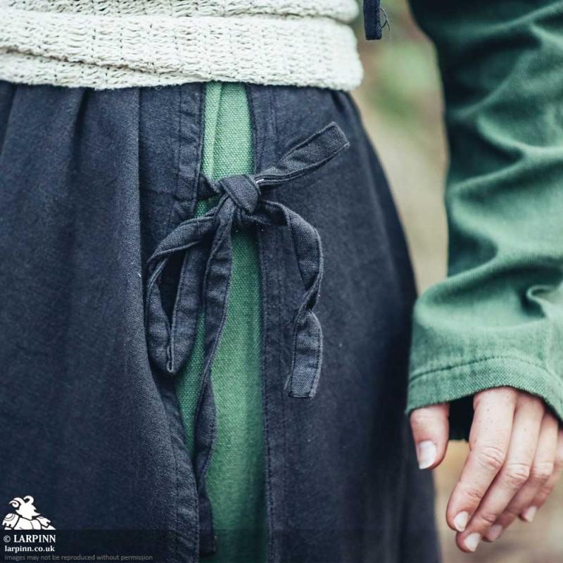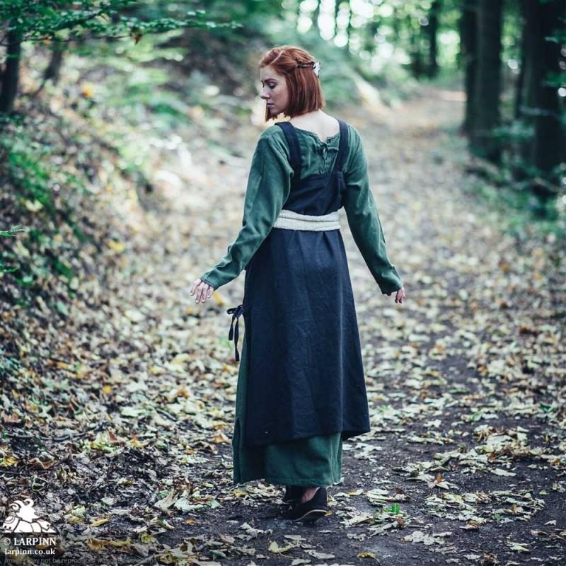 Step into the enchanting world of viking times with our stunning Hildegard Overdress. This sleeveless, full-length garment is inspired by historical designs. Its simple yet elegant straight silhouette and wide shoulder straps create a look reminiscent of noble attire. The apron-like design wraps gracefully around your form, secured at the sides with functional ties for an adjustable fit.