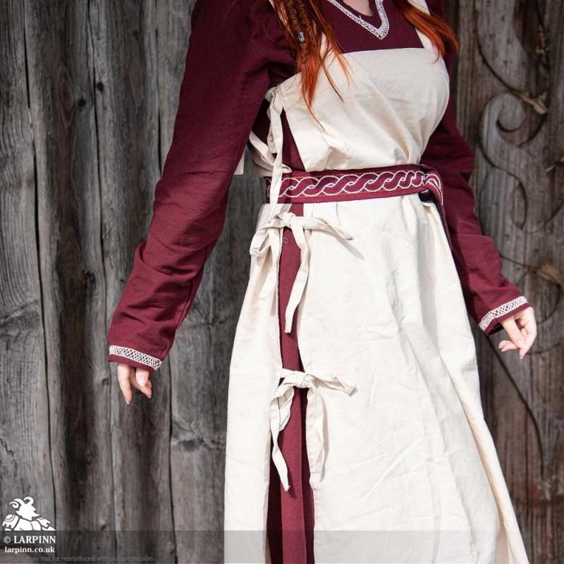 Step into the enchanting world of viking times with our stunning Hildegard Overdress. This sleeveless, full-length garment is inspired by historical designs. Its simple yet elegant straight silhouette and wide shoulder straps create a look reminiscent of noble attire. The apron-like design wraps gracefully around your form, secured at the sides with functional ties for an adjustable fit.