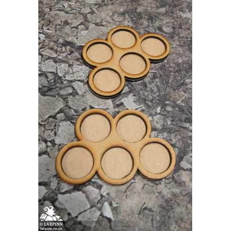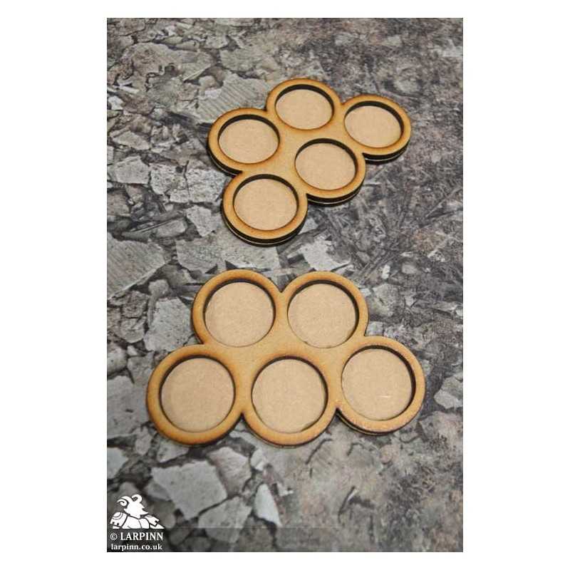 These MDF Movement trays help move your hordes of slavering beasties (or heroic skirmishers) around the battlefield with the minimum of fuss. These ones have holes in suitable for miniatures with 25mm bases, and each tray can hold 5 miniatures.