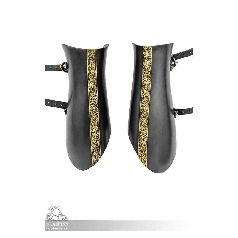 To the eye, our range of polyurethane armours are near indistinguishable from their metallic counterparts. They are however much more comfortable to wear and can be worn for long periods of time without discomfort. Indeed, the flexible nature of this armour means that it can bend to the contours of your body in a way that rigid steel will not. Each part is typically a quarter of the weight of their steel equivalent, allowing for faster movement with less fatigue. Each piece is hand painted with a durable acrylic finish and is detailed to look as realistic as possible. The maintenance free finish will not rust like steel does and can be worn in all weathers. Adjustable leather straps and the flexible nature of the armour allow it to be comfortably worn by all but the largest of people.
