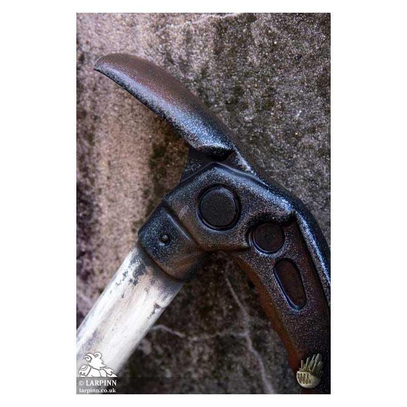 This tool-made-weapon is entirely hand painted with a white handle and metal finishes, and is sculpted from safe EVA foam around a 8 mm solid fibreglass rod core. It is coated with a strong layer of flexible latex. This Ice Axe might be the one thing between your LARP character and the zombies and raiders--and with proper care, it should last longer than your character’s likely survival rate.