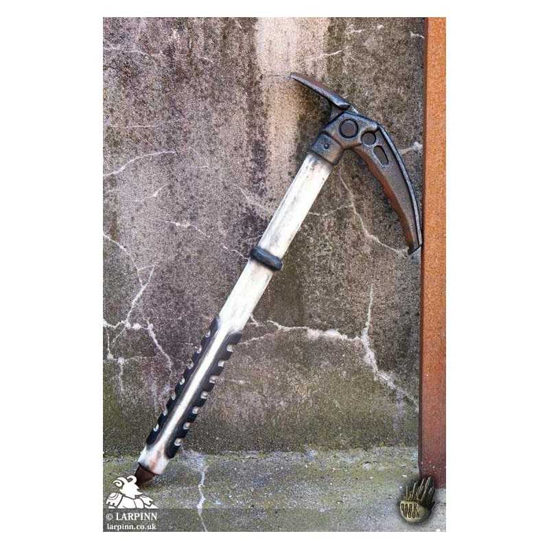 Epic Armoury’s White Ice Axe is a 63 cm short axe designed to imitate a real, multifunctional tool used by ice climbers for your next live action roleplay (LARP) game. When fighting in the post-apocalypse, you might need whatever weapon you can get! An ice axe is a good option thanks to its spiked pommel, ribbed grip, and dual pick and adze head.