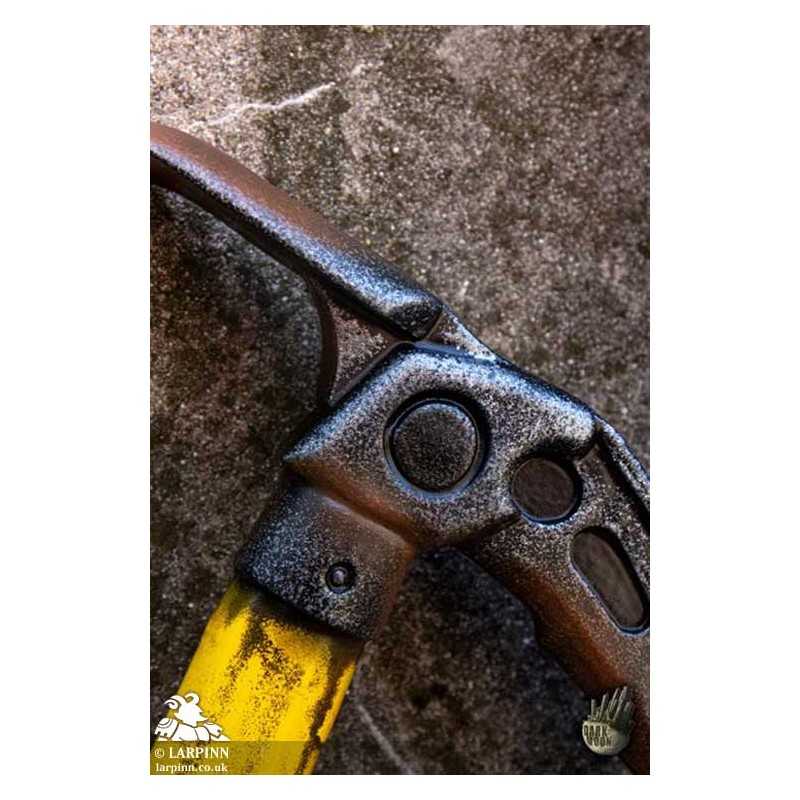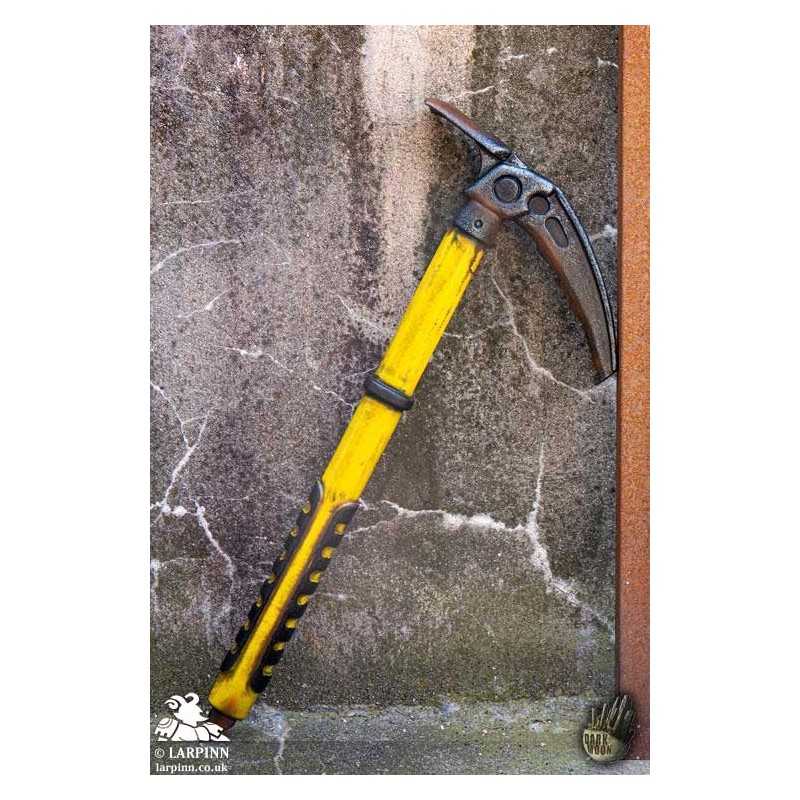 This tool-made-weapon is entirely hand painted with a yellow handle and metal finishes, and is sculpted from safe EVA foam around a 8 mm solid fibreglass rod core. It is coated with a strong layer of flexible latex. This Ice Axe might be the one thing between your LARP character and the zombies and raiders--and with proper care, it should last longer than your character’s likely survival rate.
