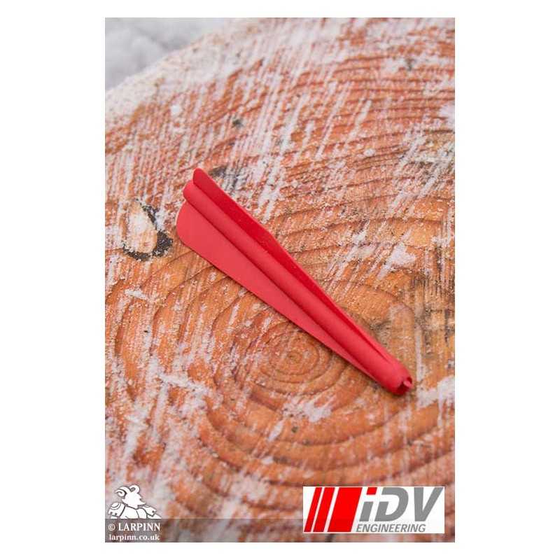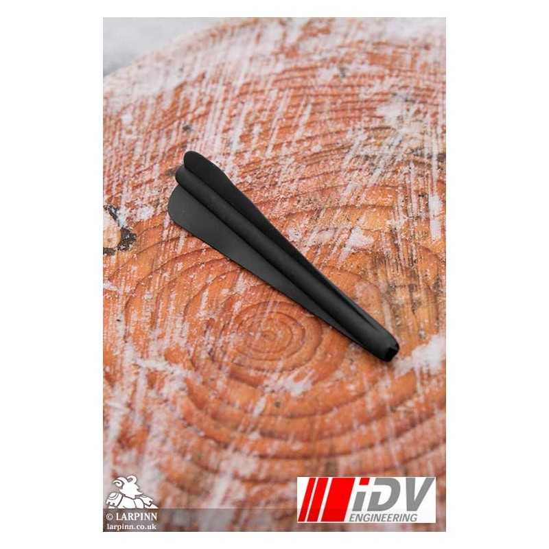 This Fletching for Larp Arrows is designed by iDV Engineering, the leading archery crafters in the LARP industry. Created to match iDV flathead and round head arrows and bolts, this flexible black elastomer fletching is a replacement in case of wear and tear on your original. Simply slide the rubber-like tube over the end of your arrow, adding a drop of adhesive if necessary.