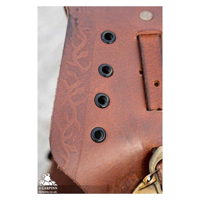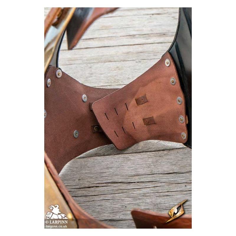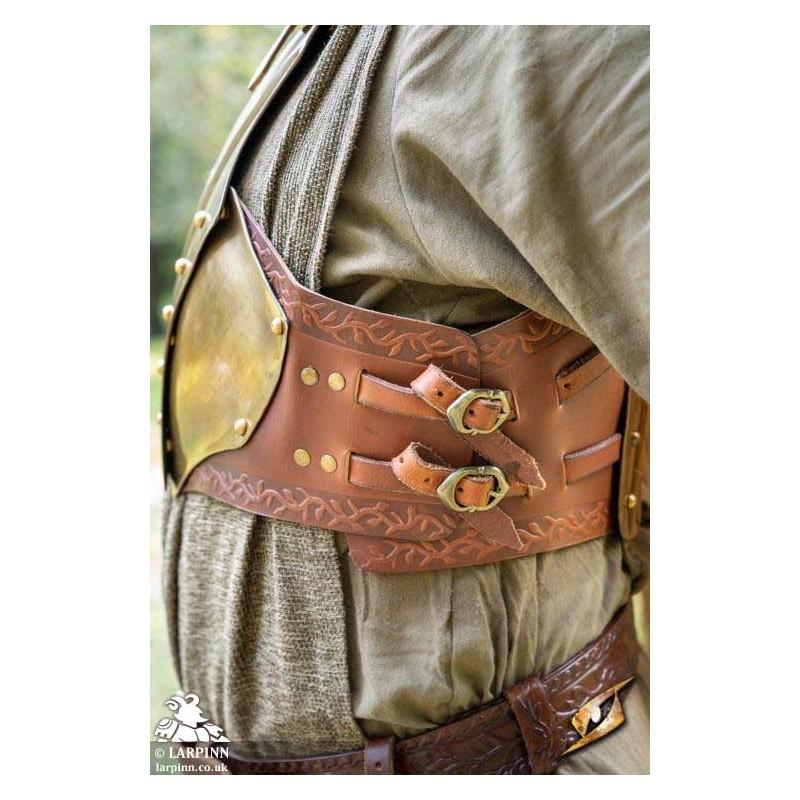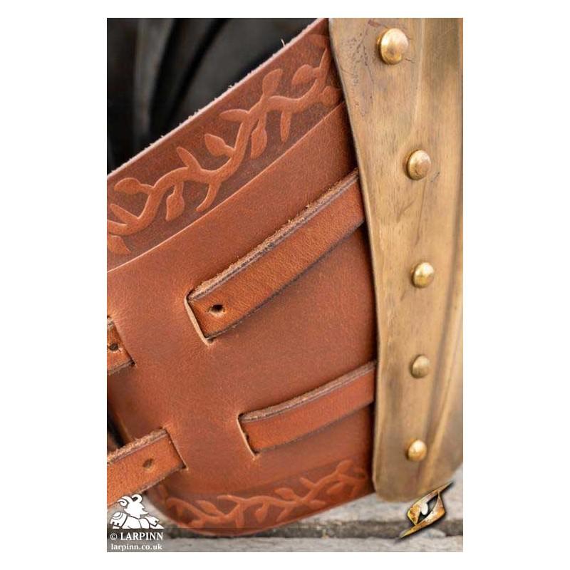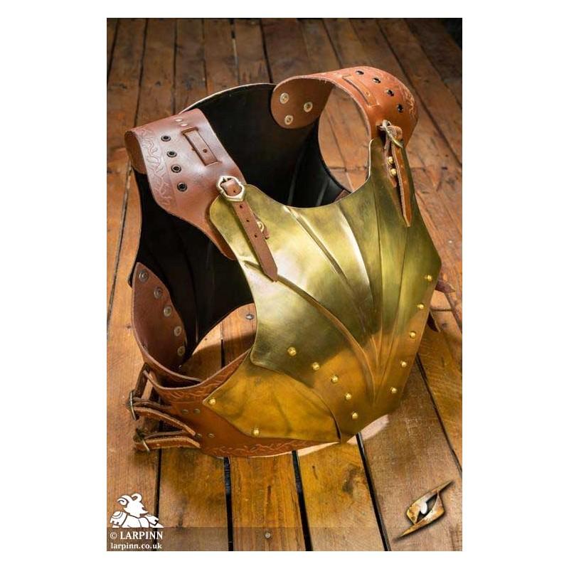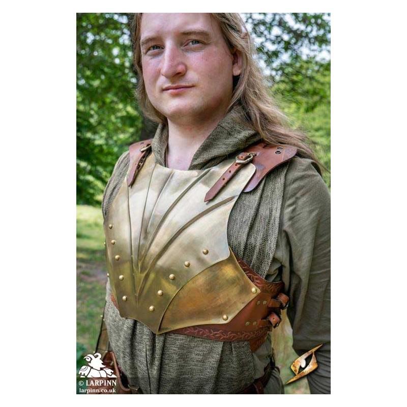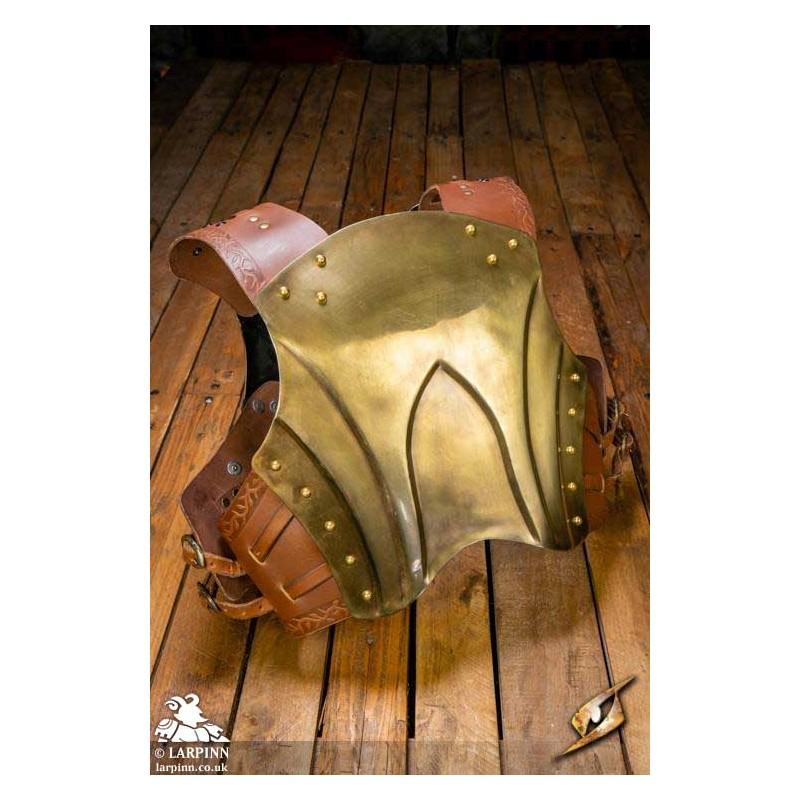 There is something truly spectacular about Epic Armoury's Illumine Cuirass. This adjustable torso armor comes in three sizes and is equipped with an elaborate Brass breast and backplate whose design was inspired by this mythological race. It is a fantasy armour that will endure any Larp battle and bring victory to the realm. The brass plates are mounted on a thick leather cuirass adorned with a pattern that only the elves could inspire. Adjustable straps mounted on the top and on either side allow the warrior to adjust the cuirass snug to the body. Similar to the Galadhrim Warriors of old, this torso armor will likely make you a better warrior ad you defend your borders.