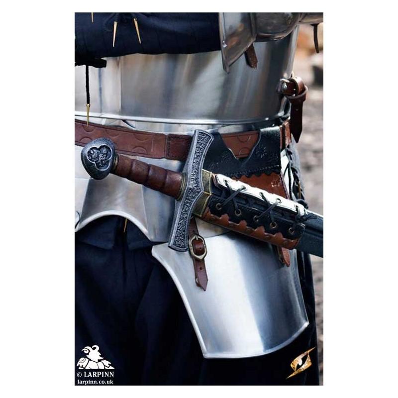Epic Armoury’s Imperial Swordholder is a simple way to carry your weapon on your waist belt while adding detail and authenticity to your overall outfit. Using full-grain leather with a vegetable-tanned finish, this swordholder is versatile and attractive. Adjustable to the size of the weapon or scabbard with its split-leather cord, this swordholder is a perfect addition to your costume.