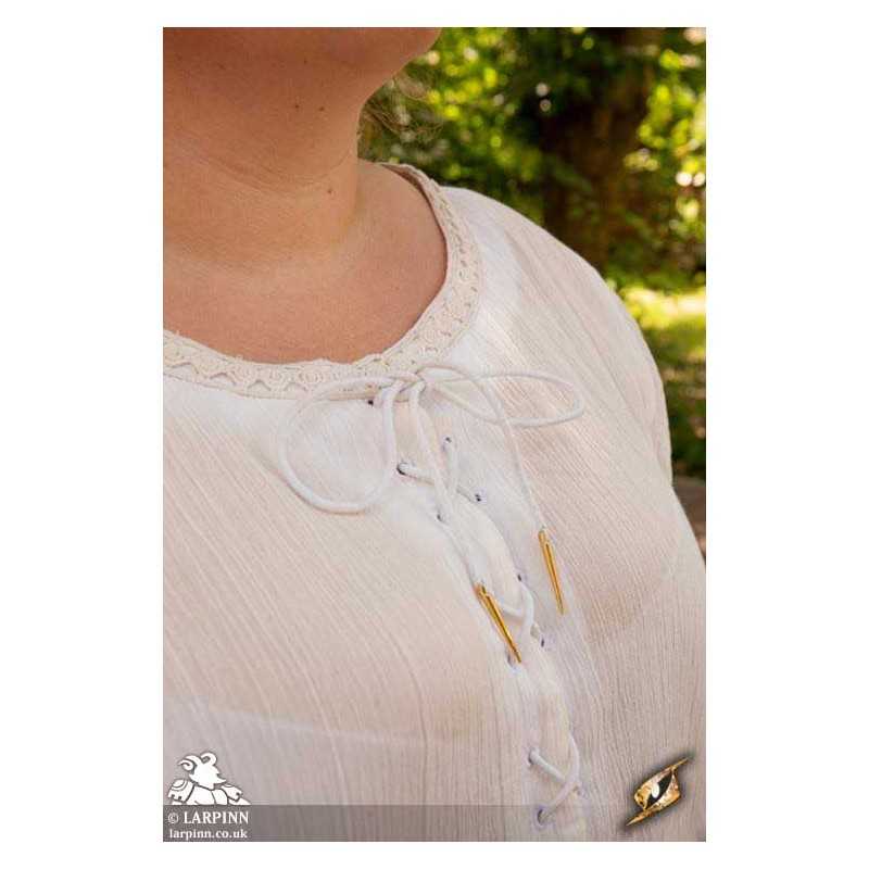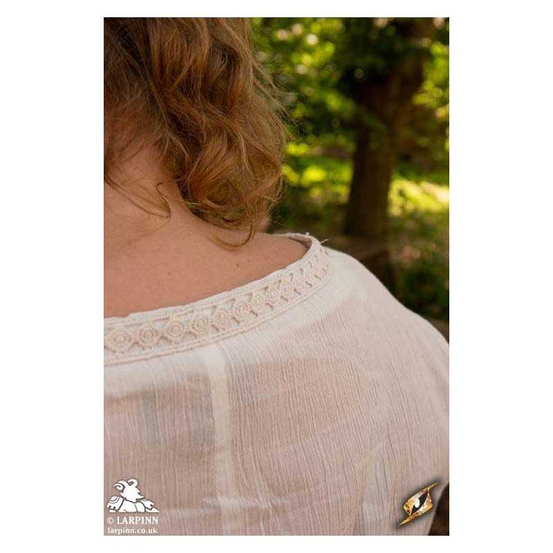 The Shift Isobel is a sophisticated design that will suit many LARPer, cosplayer, and reenactor needs! Slip the shift on and tighten the lacing up the front using the hand sewn eyelets and our black cotton laces.