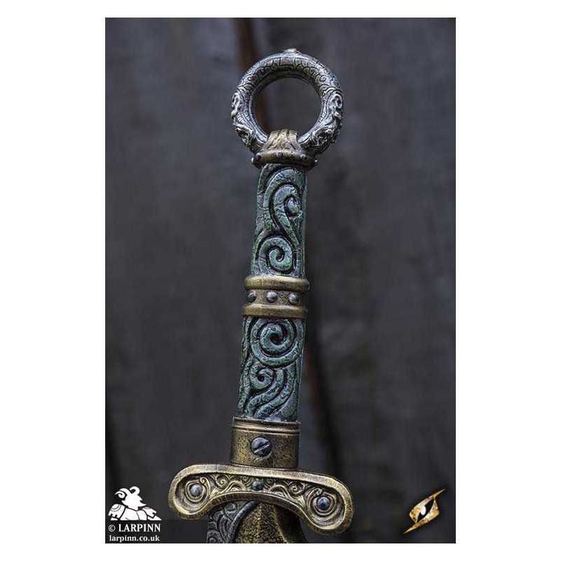 Epic Armoury’s Jade Dao 100 cm is a perfectly balanced latex-hybrid weapon inspired by the ‘General of Weapons’ – a curved sword traditional in Chinese culture. It features a balanced single-edged blade, popular with cavalry and effective at chopping and slashing. The blade is slightly curved with a fake-edge meant to improve its piercing effectiveness, and attaches to the beautifully detailed polyurethane handle. This handle is shaped and painted to look like carved jade and gold with a ring shaped steel-coloured pommel, matching the overall intricate design. It also features a counterweight system to give it a great feel in the hand.