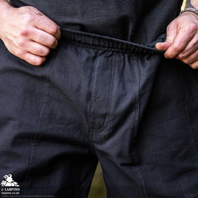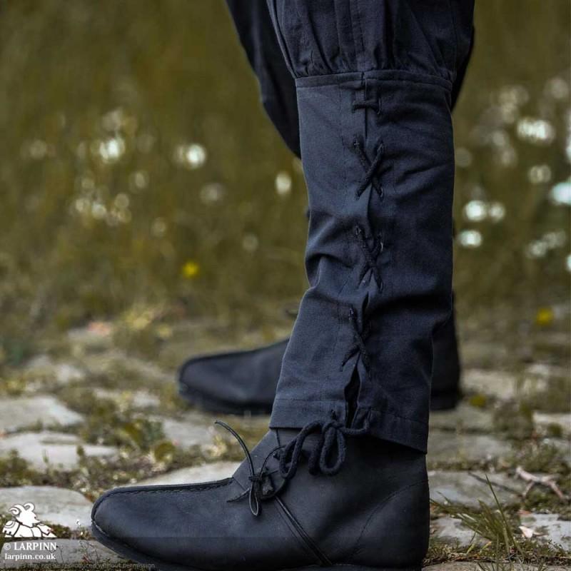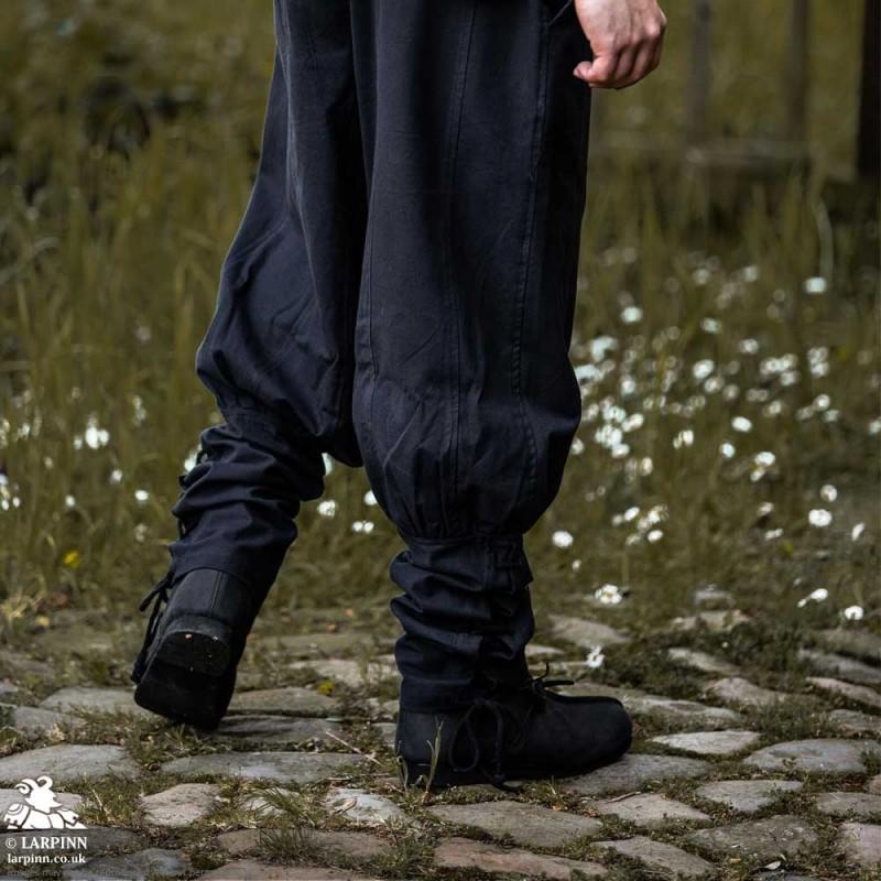 Step into the world of medieval fantasy with the Jaim Hero Pants, a perfect blend of historical inspiration and modern comfort. Designed for those who seek both style and functionality, these trousers feature a loose-fitting design that allows freedom of movement on all your quests. The gathered waistband ensures comfort, while the intricate leg lacing at the bottom adds a unique touch to your ensemble. With practical pockets positioned at the hips, you'll have everything you need within reach as you traverse through time.
