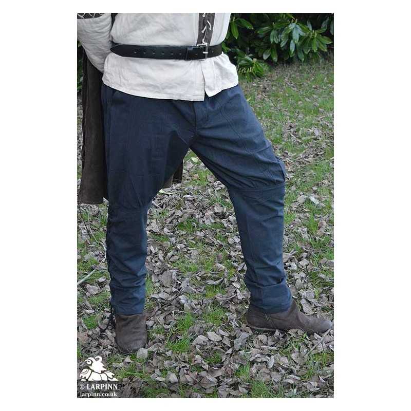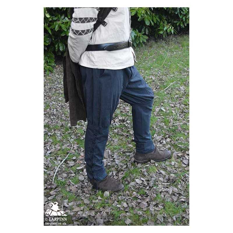 These Kalin Pants are medieval styled trousers perfect for cosplay, theater and LARP. The waist line of the trousers is designed to be fairly loose and has a tie which can be used to adjust and tighten the size of the trousers. There is also a button which can be used for those who prefer a tighter fit.