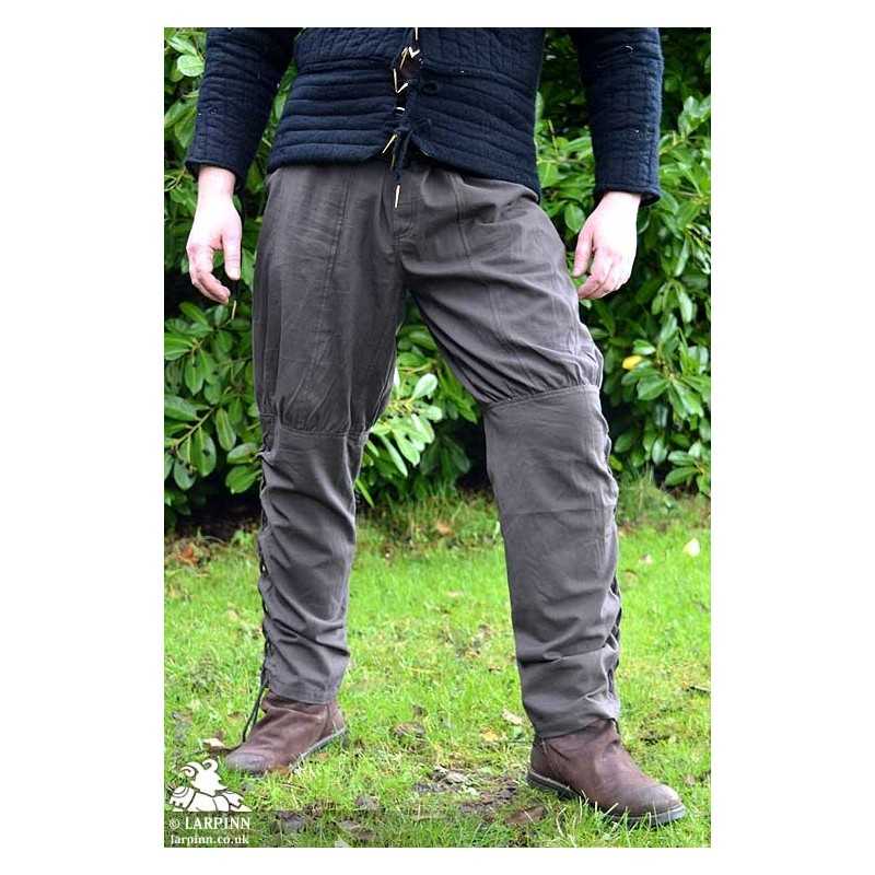 These Kalin Pants are medieval styled trousers perfect for cosplay, theater and LARP. The waist line of the trousers is designed to be fairly loose and has a tie which can be used to adjust and tighten the size of the trousers. There is also a button which can be used for those who prefer a tighter fit.