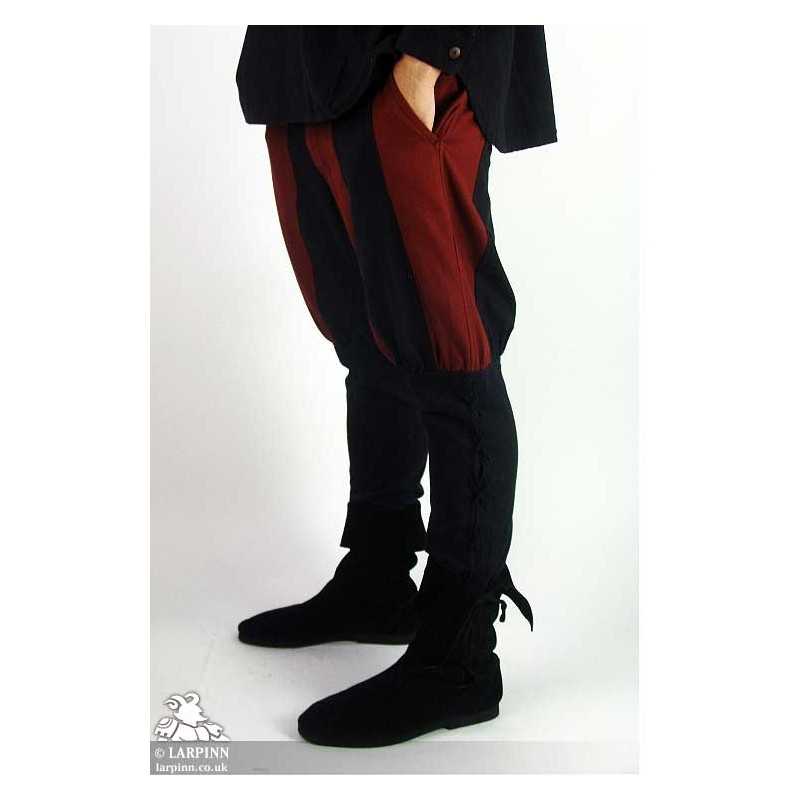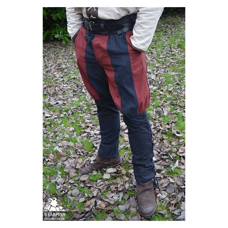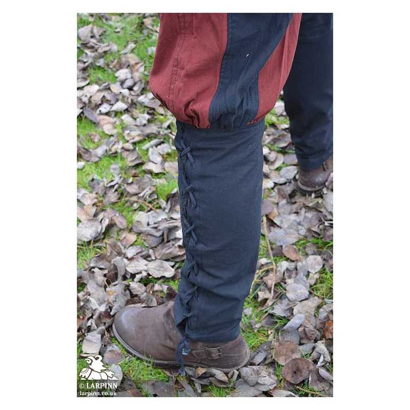 These Kalin Pants are medieval styled trousers perfect for cosplay, theater and LARP. The waist line of the trousers is designed to be fairly loose and has a tie which can be used to adjust and tighten the size of the trousers. There is also a button which can be used for those who prefer a tighter fit.