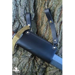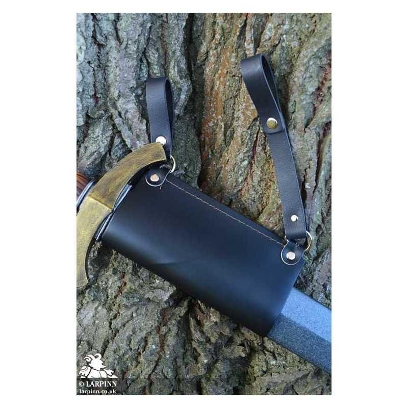 The Khan Side Scabbard is an essential piece of kit for any larper. This particular scabbard is fairly simple in design, making it economically friendly. However, the strap fittings offer a specialised fit which increases you ability to move around objects and people without accidentally stabbing obstacles with your sword. The two length also create a steeper angle for the sword to point down; so, the blade doesn't get in the way as much.