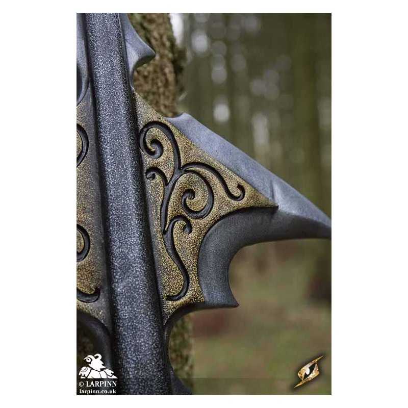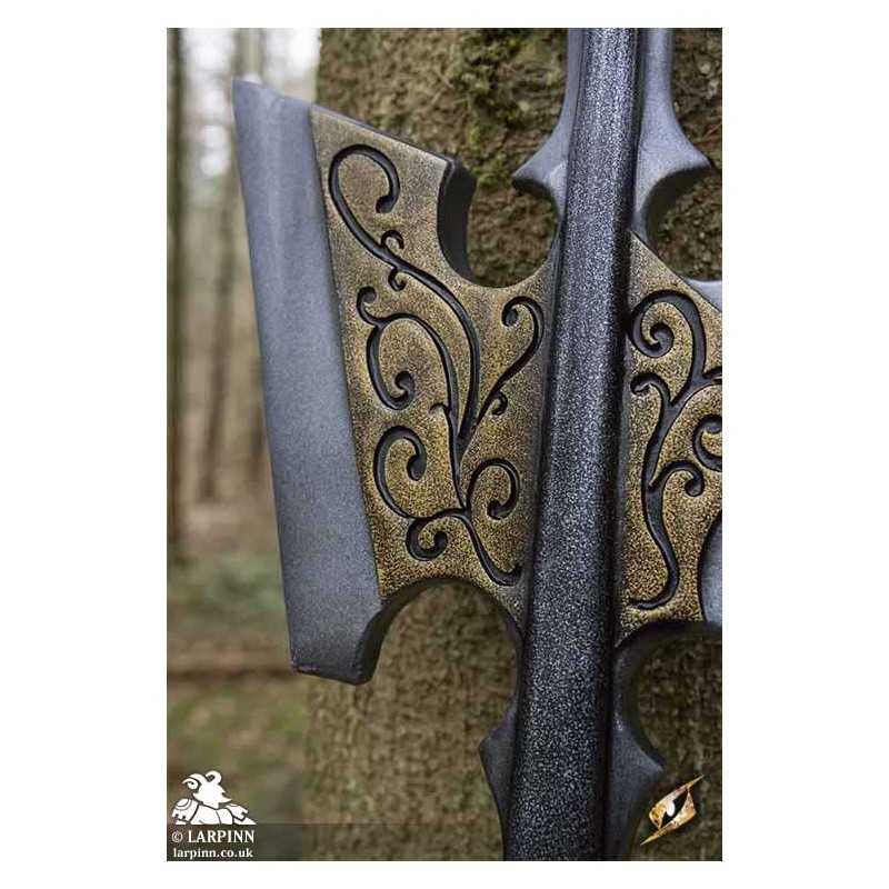 Epic Armoury’s Kingsguard Halberd is a 190 cm latex poleaxe inspired by a weapon commonly used during the late medieval period. The Kingsguard Halberd’s axe-like head has a 47 cm blade for chopping, a long spear for piercing, and a claw-like spike for grappling. The axe-head is hand painted and sculpted to appear realistic, detailed with golden carved vines to give it a rich, royal appearance.