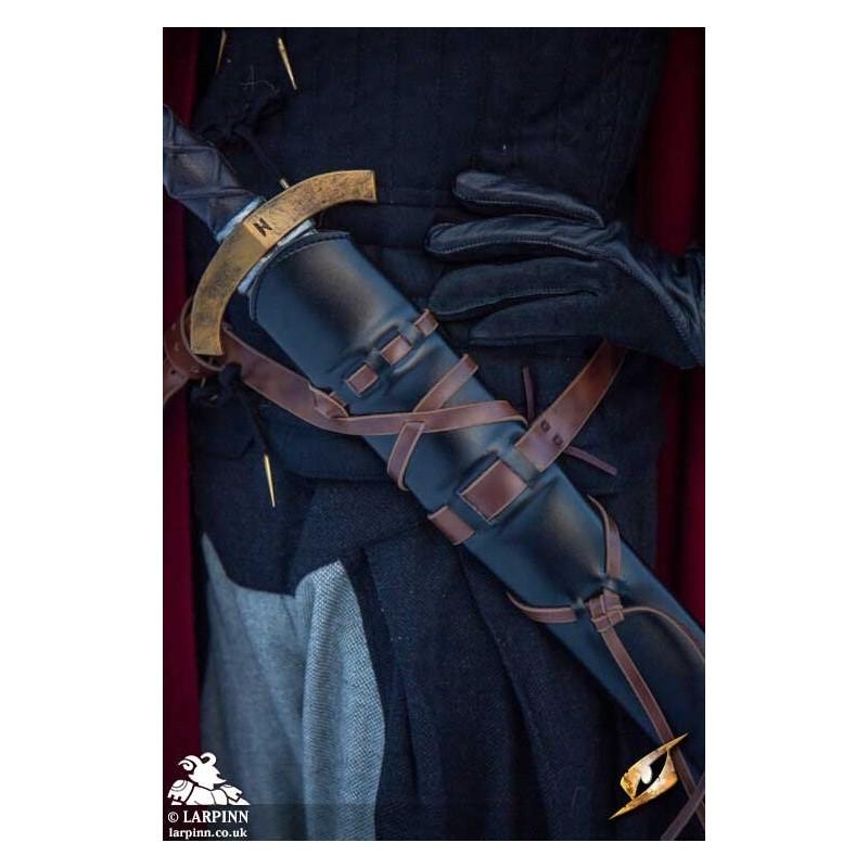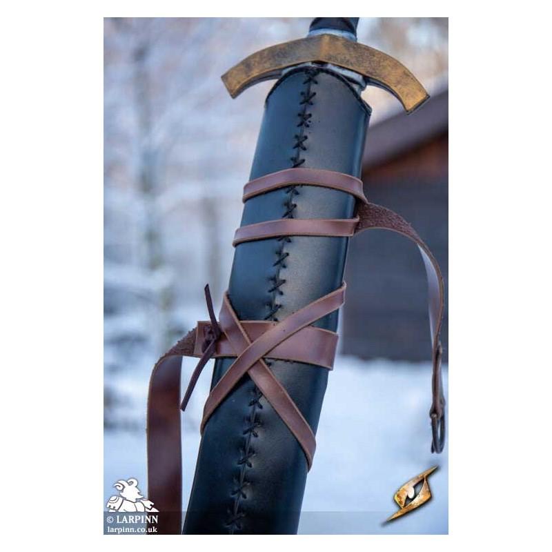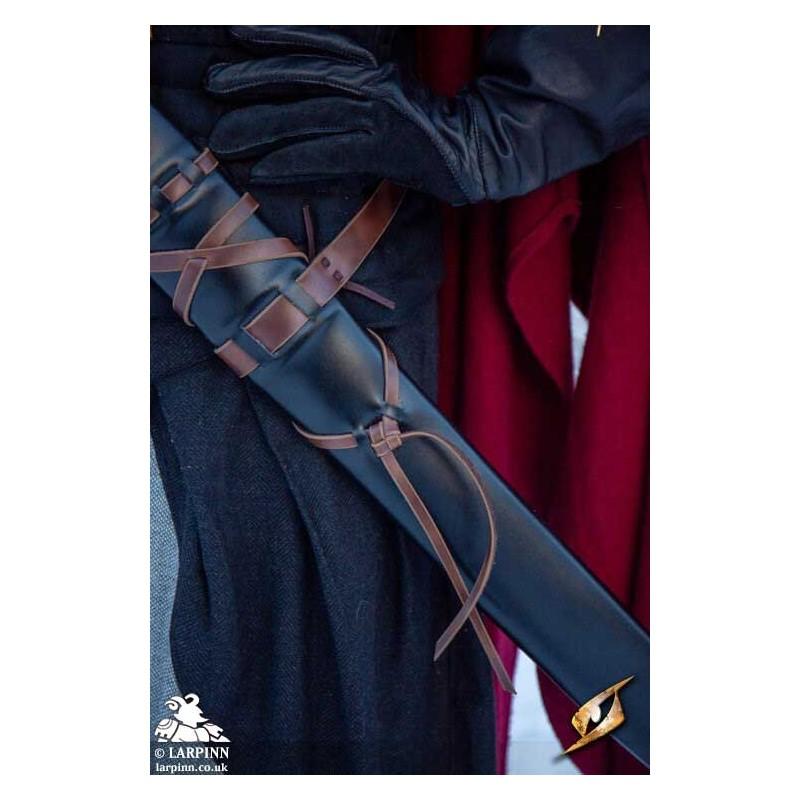 Epic Armoury’s Knights Scabbard - Faux Leather is a long vegan-leather sheath designed to guard your weapon from the elements while carrying it in style! This all-in-one full-blade sheath has an integrated belt and soft polyester-wool padding to protect your weapon while making it easy to draw. The Knights Scabbard is designed to fit the swords of the Stronghold Master Collection, with the measurement of the ricasso being the length difference in both scabbards and swords. While designed to fit the Stronghold Collection, the Knight Scabbard can easily fit other Epic Armoury swords, depending on their length.