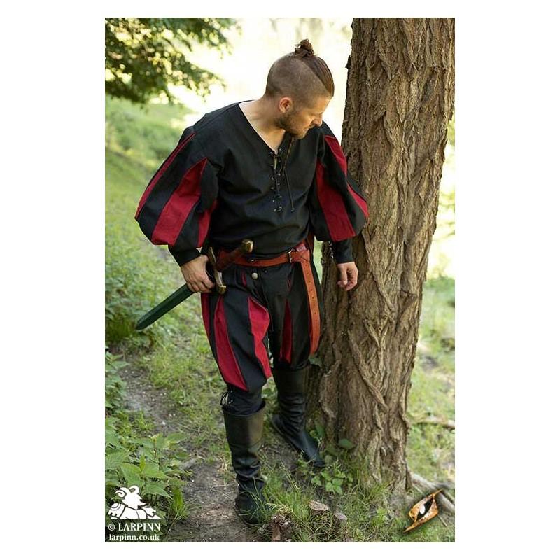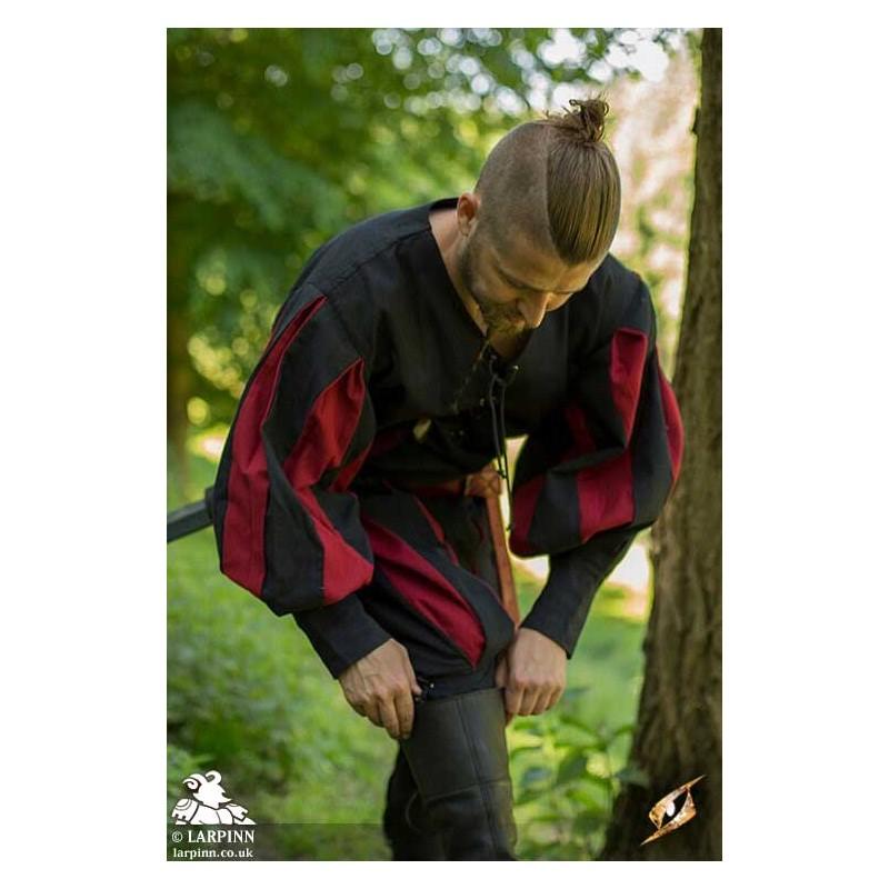Epic Armoury’s Landsknecht Shirt is a hip-length shirt with baggy sleeves and vertically cut colours, most often associated with the wealthy men of the Renaissance. Made from durable heavy cotton, this shirt has a broad neck which can be laced open or closed. The contrasting puff-and-slash sleeves end in narrow cuffs at the wrists, which are adjusted by tightening its reinforced cotton cord to get the best fit.