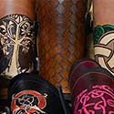 A selection of leather bracers perfect for LARP, cosplay, reenactment or just fancy dress.
