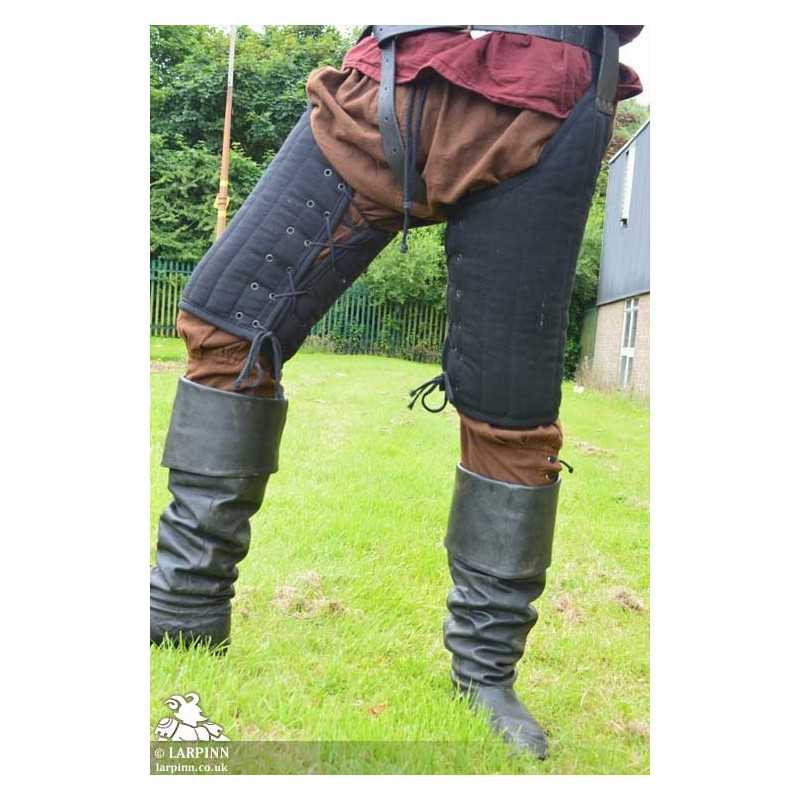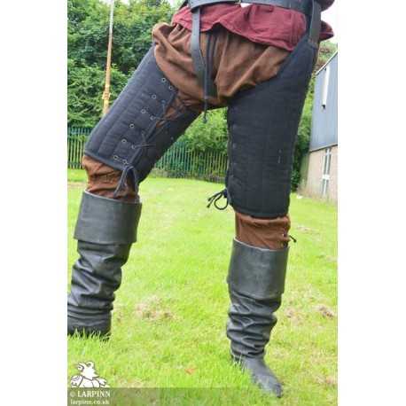 The Leopold Upper Leg Armour is designed to provide protection from upper leg armour made from plate or leather that could potentially rub. The canvas matieral is stuffed with polyester padding and swen to give about 3mm of additional padding. This item is perfect for your Larp, stage or cosplay costumes in order to increase comfort and retain flexible movement.