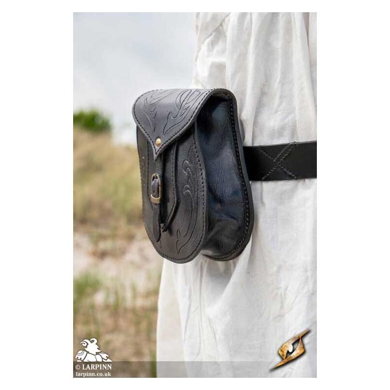 Epic Armoury's Black leather Lorian bag is nothing short of spectacular. This leather pouch is made from fine vegetable-tanned leather and is stitched at the seams for durability. The eleven filagree pattern is ever-present on this Larp Pouch. Making its rich presence very visible to those who want its content. A sturdy leather buckle ensures the content's safe keepings as you battle to fend off bandits and two strong belt loops allow the ranger to secure it to any belt. This Lorian Bag is a useful element to any character's costume and is a must-have for any elf, fairy or pixie.