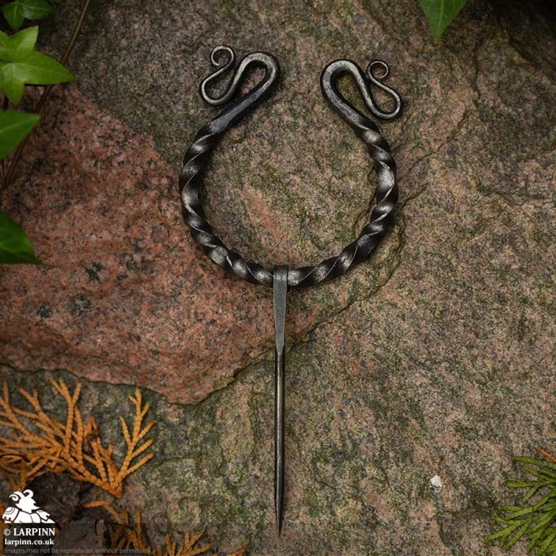 The Lyra Fibula Cloak Pin is a rustic fastening for cloaks, kilts and other essential items of LARP costume. In our opinion, it's the small accessories and adornments which really bring a costume to life. This artfully twisted fibula makes every costume look better.