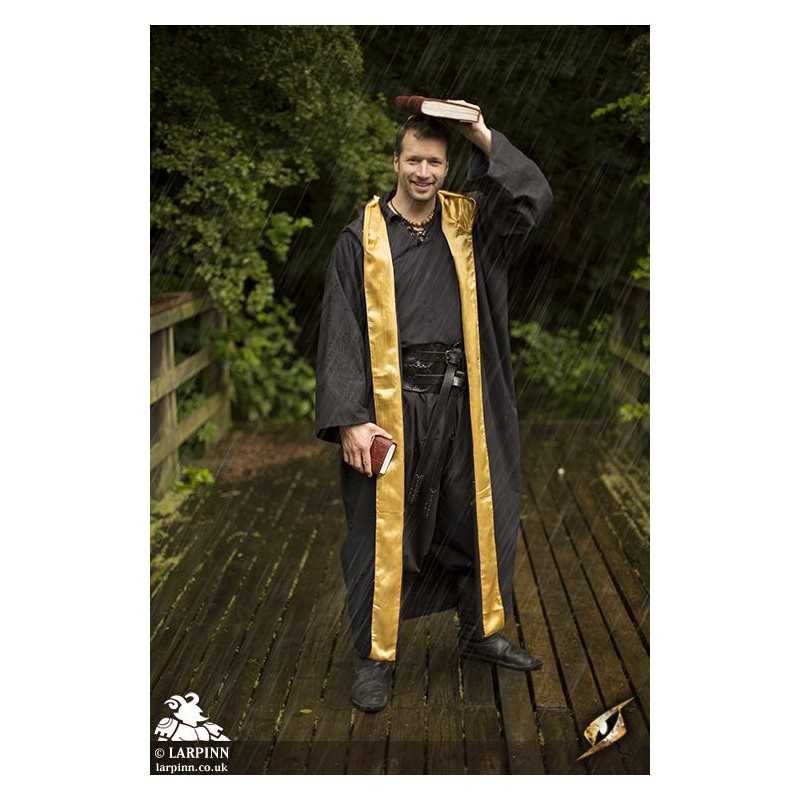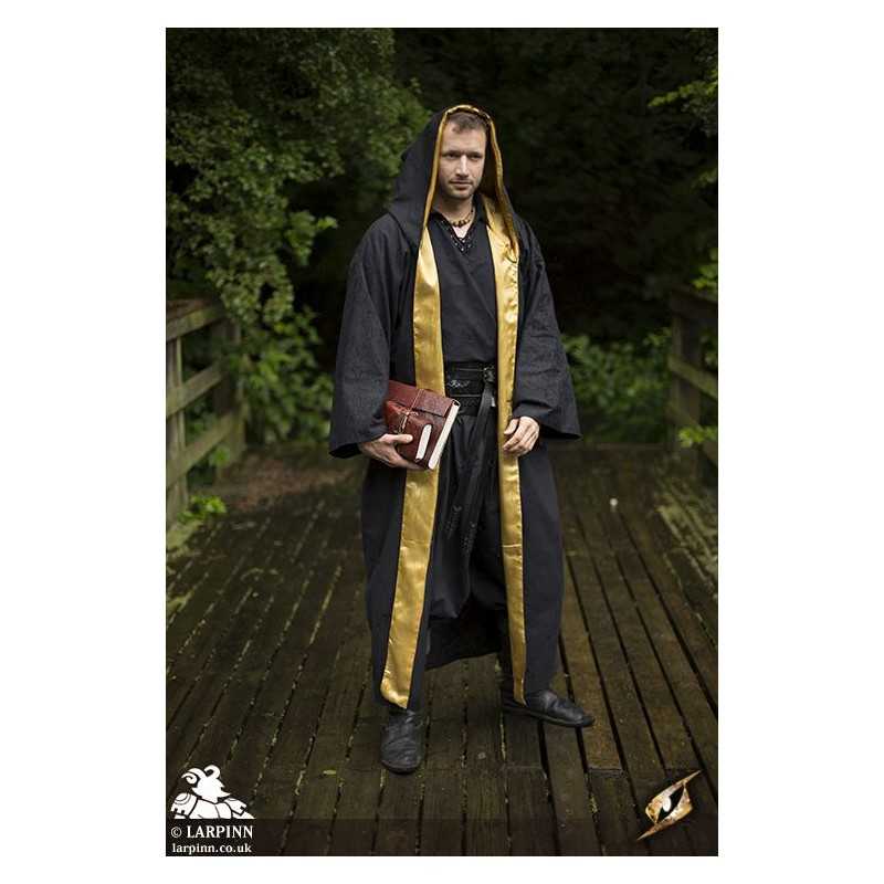 Epic Armoury’s Magician Robe is a dramatic and long-sleeved robe with an impressive hood designed for magic casters. Reaching from the head to the mid-calf, this robe is designed to protect you from the elements while adding a mysterious appearance. The robe is made from medium cotton, and embellished with a polyester satin trim.