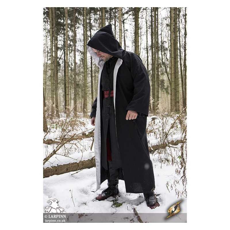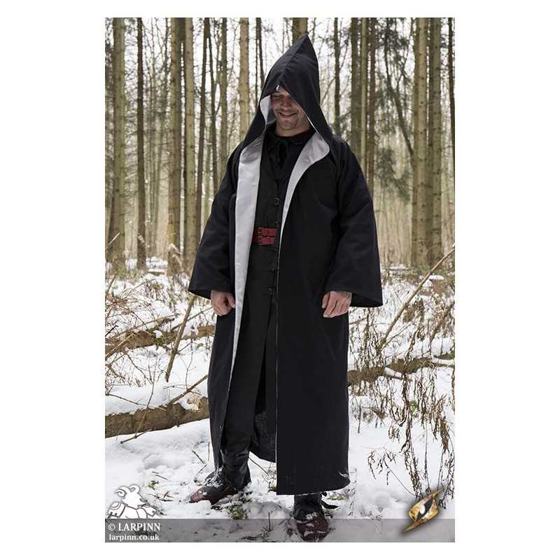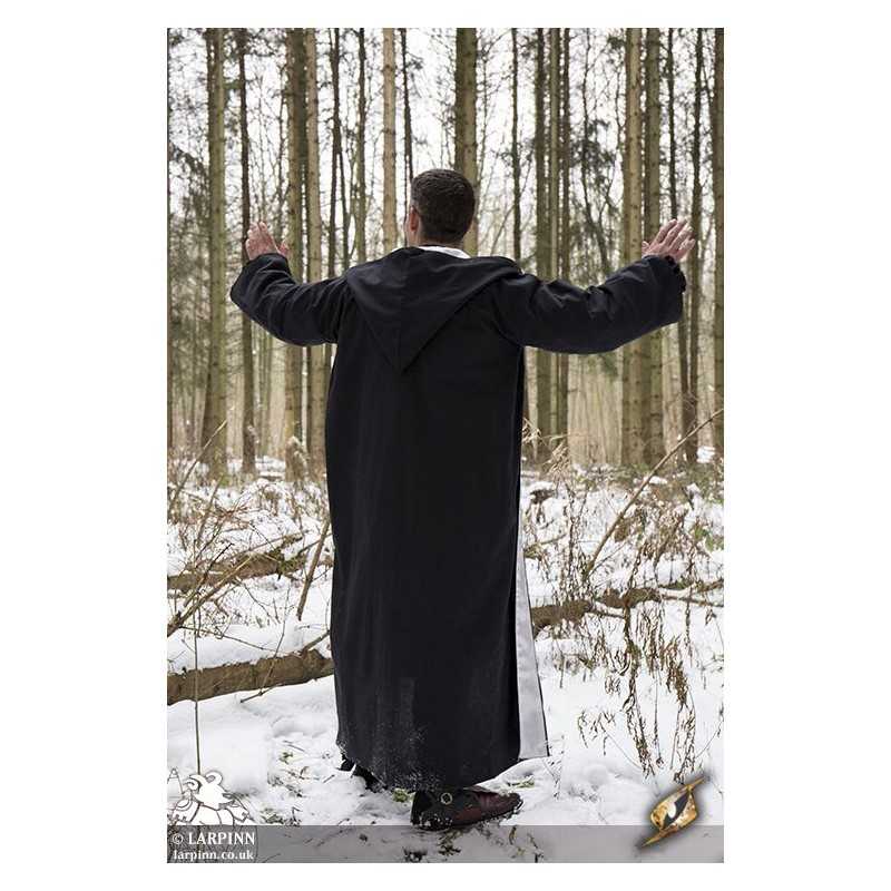 Epic Armoury’s Magician Robe is a dramatic and long-sleeved robe with an impressive hood designed for magic casters. Reaching from the head to the mid-calf, this robe is designed to protect you from the elements while adding a mysterious appearance. The robe is made from medium cotton, and embellished with a polyester satin trim.