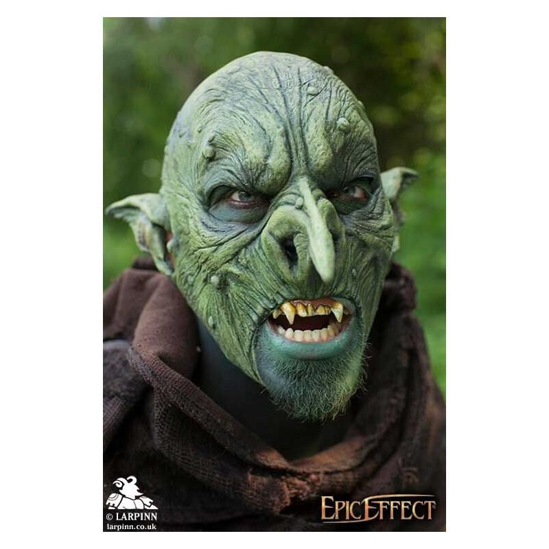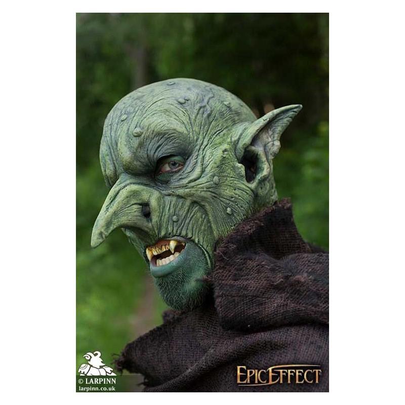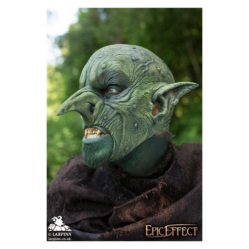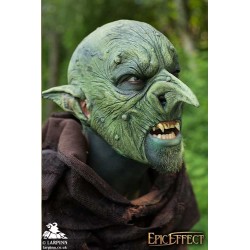 Epic Effects’ Malicious Goblin Mask is a full Goblin Mask with a cruel and mischievous feel, repulsive to civilized people. This mask has a classic goblin's distinct features: a long pointed and slightly crooked nose with large nostrils, distinct pointed ears, and heavily textured skin. With multiple warts and moles as well as serrations, scars and marked furrows on the skull, this mask maintains a menacingly feel while also appearing realistic.