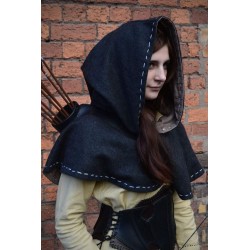 Epic Armoury’s Medieval Hood is a hood with a mantle and long hood tail. The mantle covers the shoulders, keeping the upper chest warm while the hood protects the head and face from harsh wind. Made from felted, blended wool and lined on the inside with soft cotton, this hood is comfortable and solid. Decorative stitches line the hood and hem, embellishing and adding great detail to a practical product.