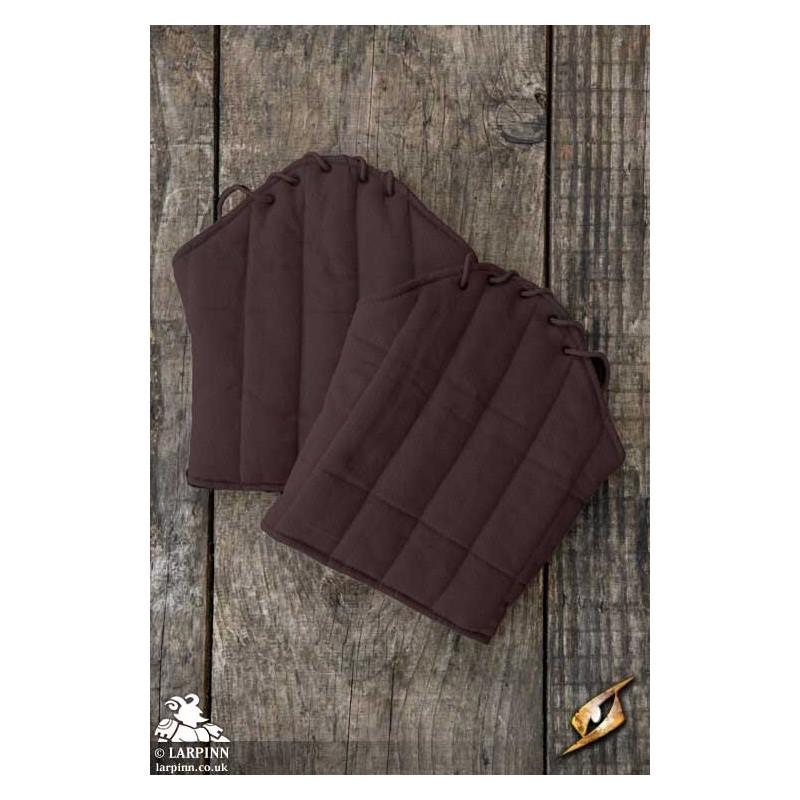 Thick enough to serve as its own armour, these sturdy short gambeson sleeves are constructed with heavy layers of fluffed polyester sandwiched between layers of heavy cotton twill. All these layers are stitched together in vertical lines, keeping the padding in place and mimicking a classic European high-medieval style.