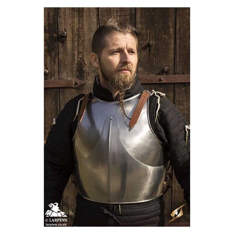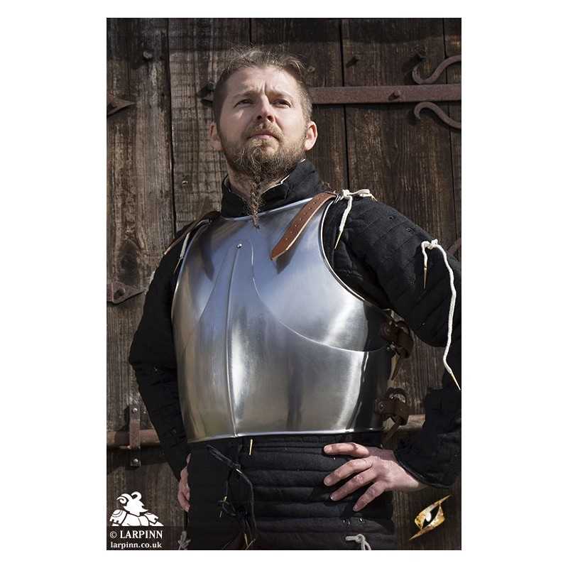The Milanese Armour is embellished with a beveled plate on the chest to deflect attacks. It is fully usable with Epic Armoury’s Faulds and Tassets and well as other metal work products, giving you the freedom to customize your character’s costume. Made of 1 mm thick mild steel and top-grain leather straps and fittings, this armour piece is built to withstand the abuse of a LARP or reenactment with regular leather and metal armour care.