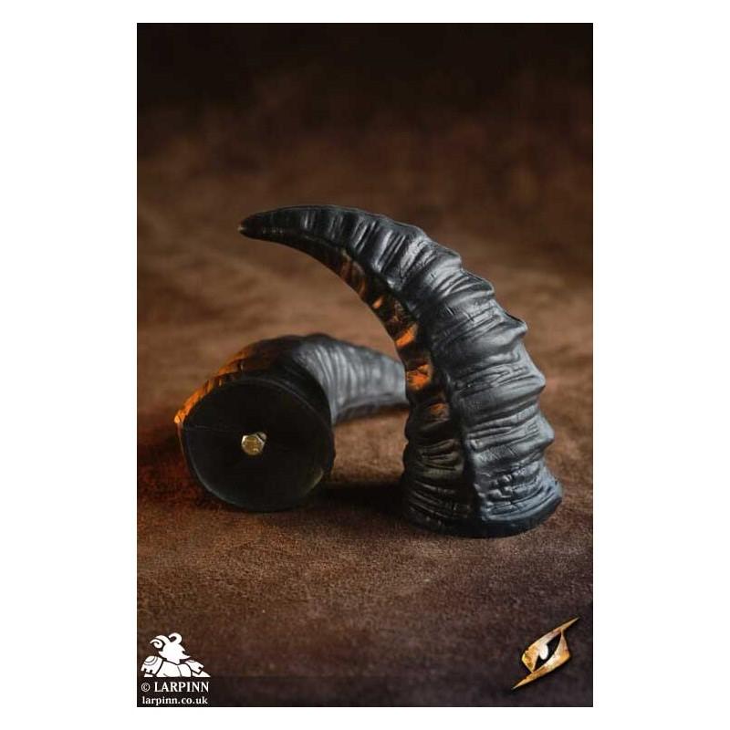The Mountable Demon Horns is the perfect accessory to give your ruinous armour a monstrous look. They are made of polyurethane with attached mounting screws and are easily attached to any armour with placeholder screws, such as the Marauder Armour. However, if you enjoy do-it-yourself projects, the Mountable Demon Horns can theoretically be mounted to any armour. If you have a character about to gaze into the moral event horizon, these spikes of villainy will take it to the infernal level!