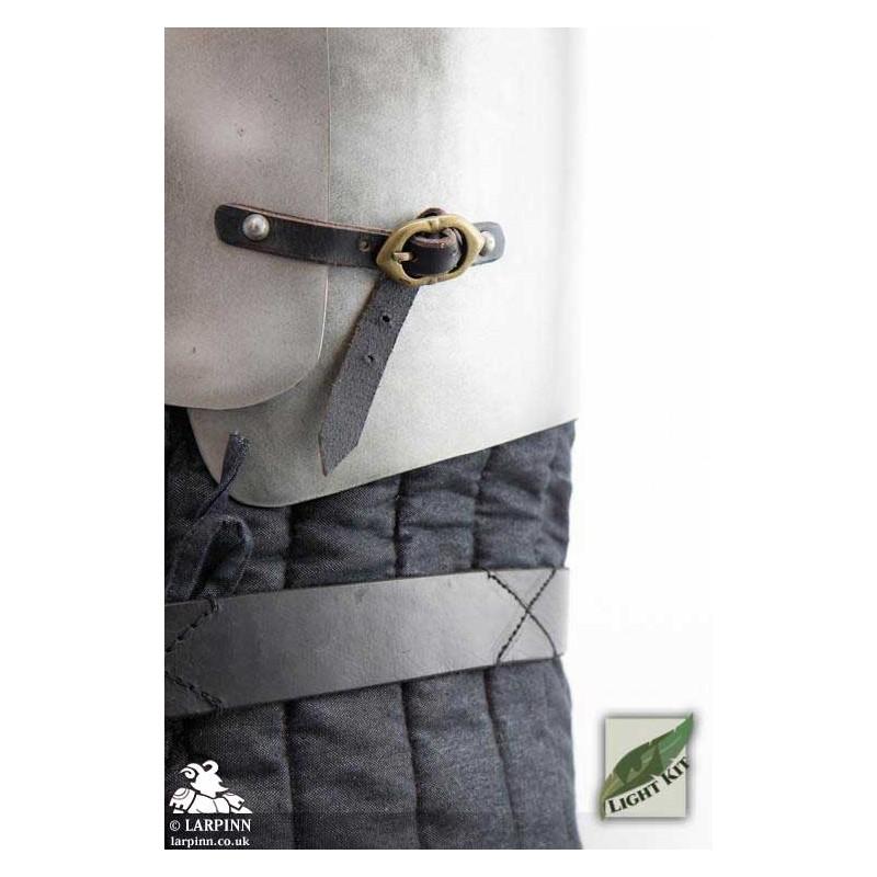 To the eye, our range of polyurethane armours are near indistinguishable from their metallic counterparts. They are however much more comfortable to wear and can be worn for long periods of time without discomfort. Indeed, the flexible nature of this armour means that it can bend to the contours of your body in a way that rigid steel will not. Each part is typically a quarter of the weight of their steel equivalent, allowing for faster movement with less fatigue. Each piece is hand painted with a durable acrylic finish and is detailed to look as realistic as possible. The maintenance free finish will not rust like steel does and can be worn in all weathers. Adjustable leather straps and the flexible nature of the armour allow it to be comfortably worn by all but the largest of people.