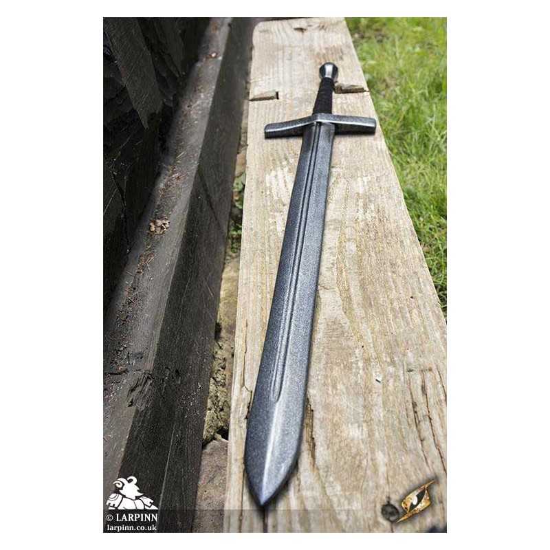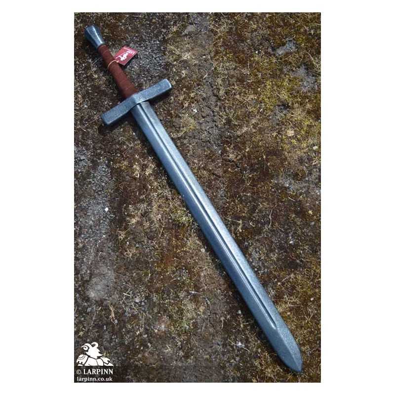 Epic Armoury’s Norman Sword is a latex longsword with a classic fantasy appearance. The 80 cm double-edged blade has a fuller and a plain, but practical crossguard. The 20 cm handle can be used one- or two-handed, and is wrapped in split-leather to assure a comfortable and secure grip. A round pommel, handpainted like the rest of the sword, is detailed to match the crossguard.