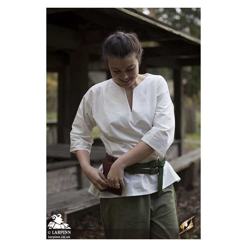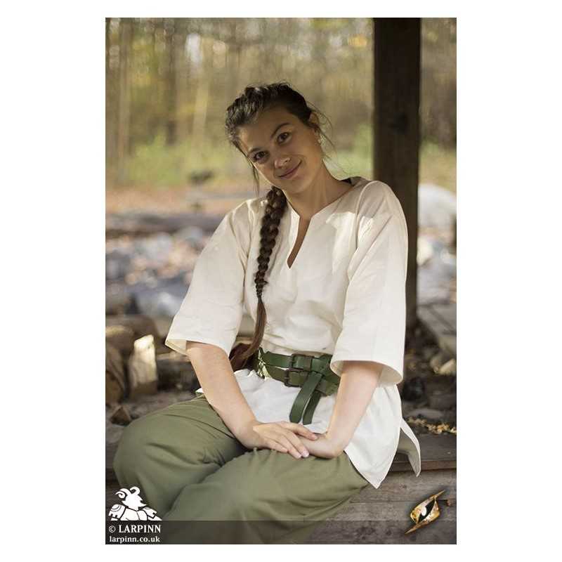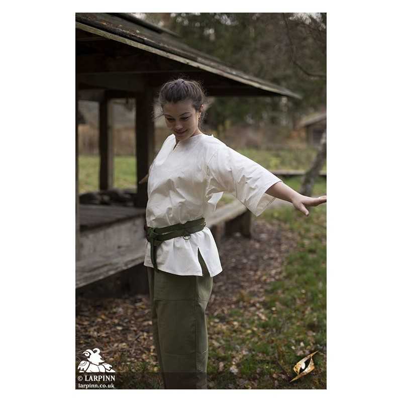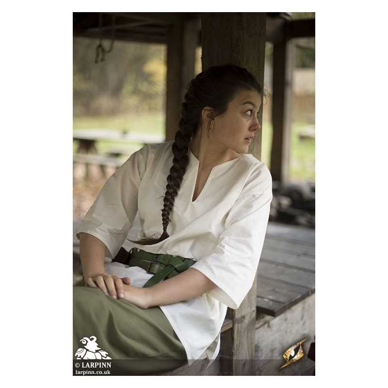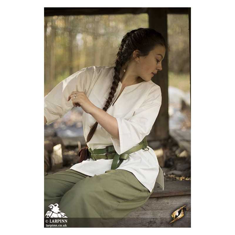 Epic Armoury's new Odin Shirt is an early Middle Age style garment with a long v-shaped neckline that is designed for both comfort and style. It falls just above the hip and is made from comfortable, dyed cotton. This shirt is an extremely versatile item that can be a costume all by itself--or work as a base layer in a more complicated design. The ¾ length sleeves have a loose fit perfect for the working class or soldier.