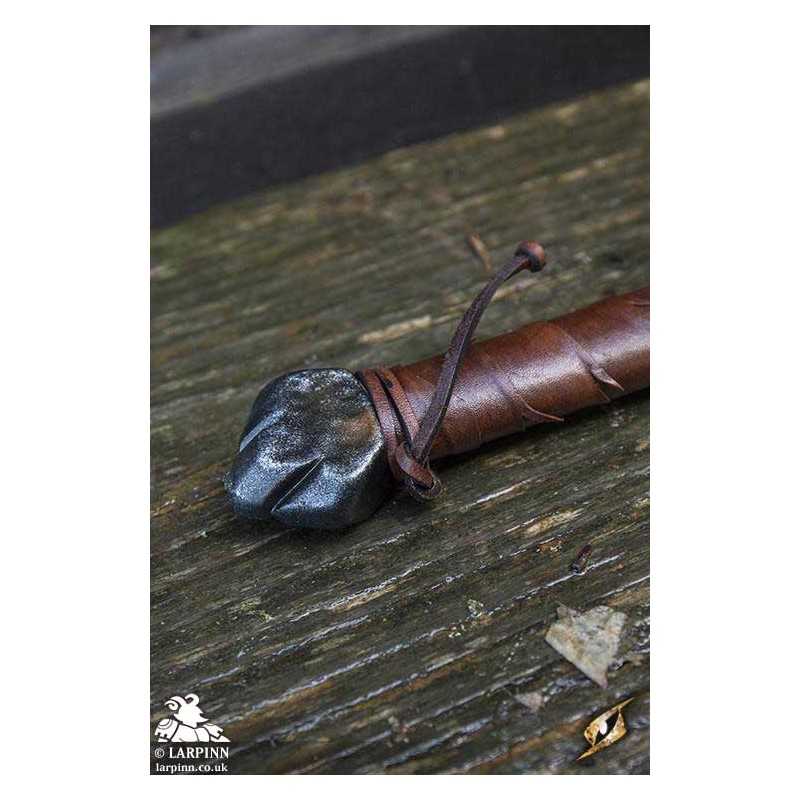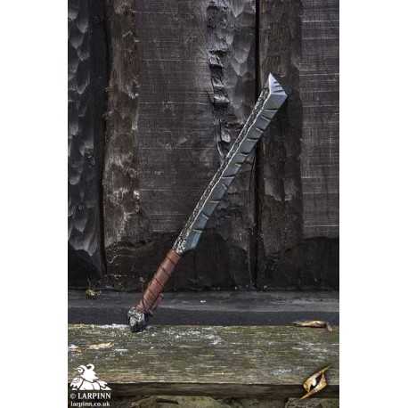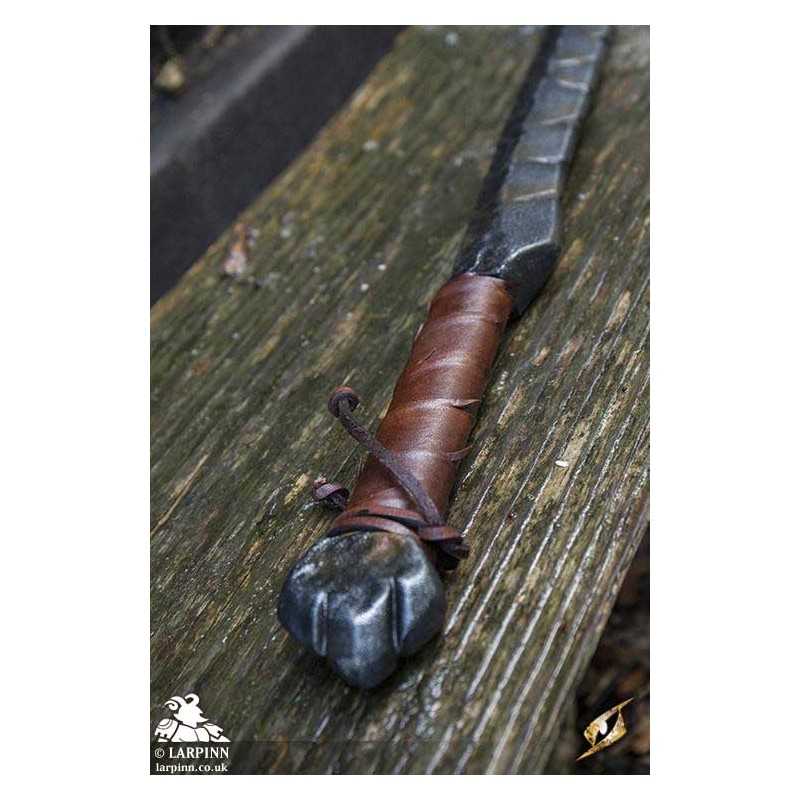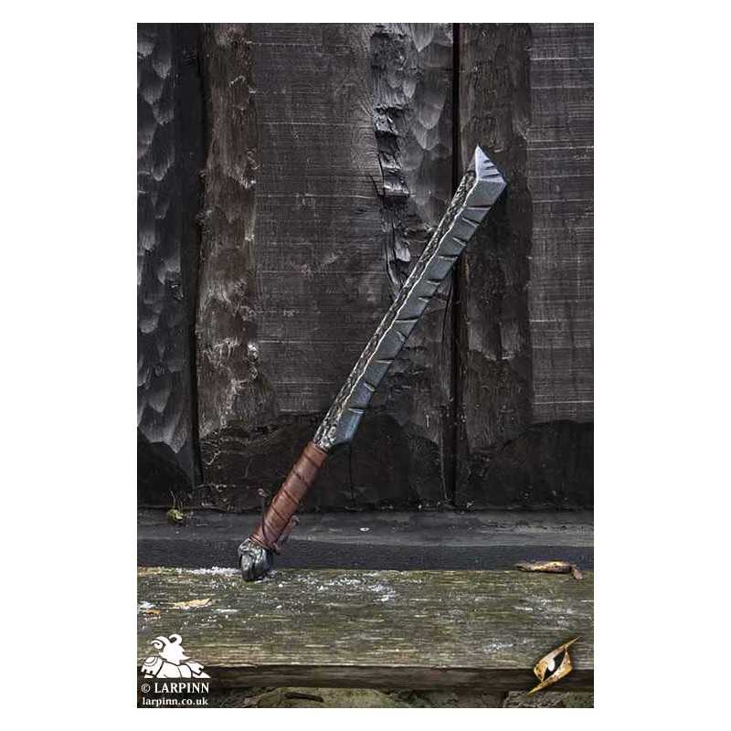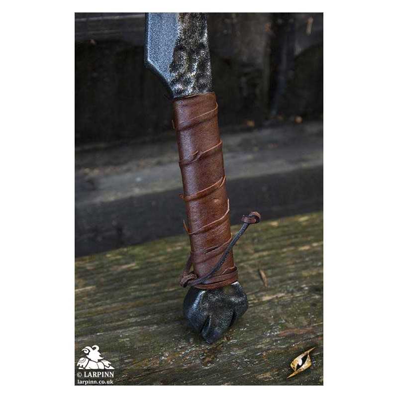 The Orc Shortsword is a latex weapon designed as part of the Orc Universe, perfect for warrior brutes and warlords alike. The sword is 60 cm long with a 45 cm heavy blade. Designed with sculpted notches, dents and scratches, the handpainted iron blade appears realistically cruel. Orcs don’t fear pain, so the 12 cm handle is not protected by a crossguard. The handle is wrapped in split-leather for a secure grip.