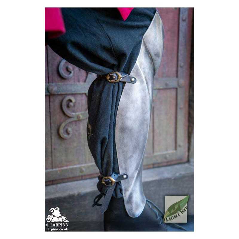 Whether you need to defend a kingdom or take on a simple quest, the Palace Guard Greaves from Epic Armoury is an excellent choice. To begin with, these polyurea greaves grant the fighter amazing agility and protection in combat. The shin guards are lightweight, require no maintenance and are perfect in any weather condition. Much lighter than steel armour, these fantasy greaves match the curvature of your legs and will protect the soldier's tibia and knees from harm. Each pair of greaves comes in a silver finish typical for any Paladin or honourable knight.