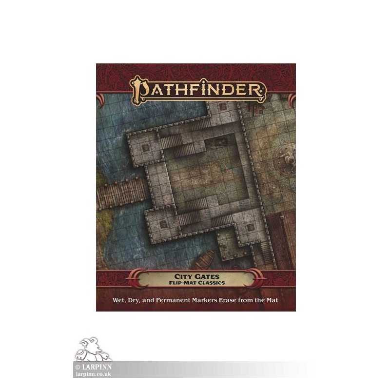 Defend or storm the battlements with Flip-Mat Classics: City Gates, a gorgeous double-sided battle-scale map of two complete fortified gates! Each side presents a different city entrance. One side features the gate into a prosperous city, while the other is the fortified gate of a dreary mountain-hugging town.
