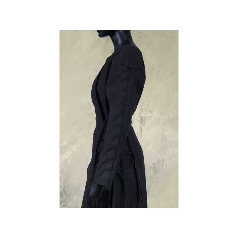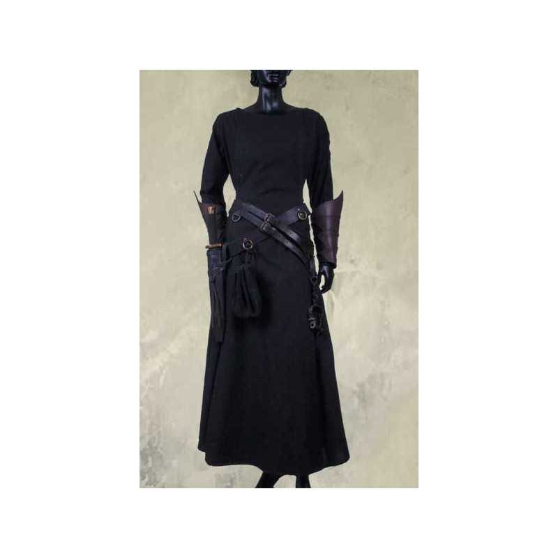 The Priestess Dress is a formal and elegant dress with long sleeves designed to function on its own or combined with other Epic Armoury clothes. Made from comfortable, soft cotton, this dress is tailored to be exceptionally versatile. The neckline is wide, showing off the collarbone and shoulders, complementing and balancing the rest of the dress’ design. Wear the long sleeves completely open in the summer, partially laced to show off your chemise, or tie them tight and straight from shoulder to wrist.