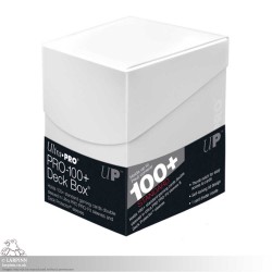 Holds up to 110 Standard gaming sleeved cards. Self-locking lid design with write-on strip. Thumb notch for easy access to cards. 1 divider inside. (Sleeves, cards not included)