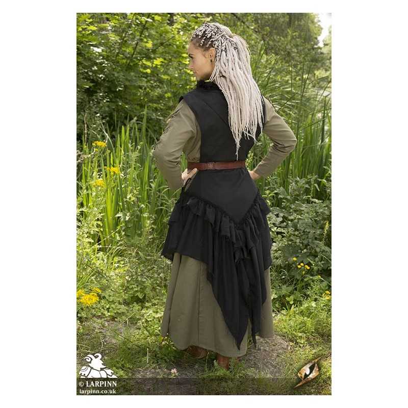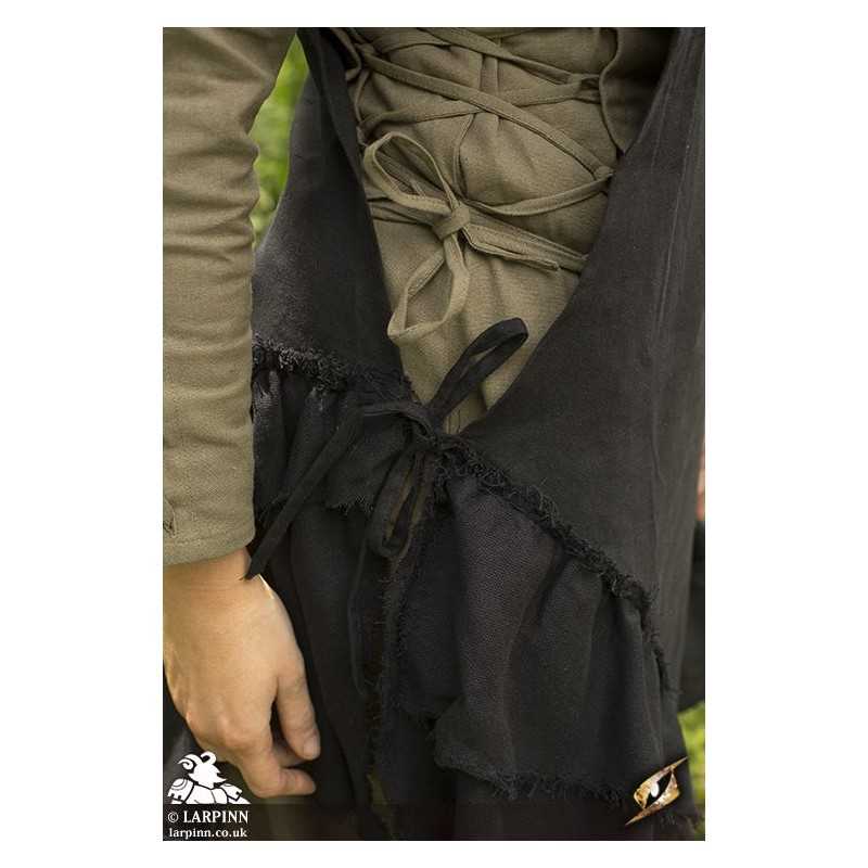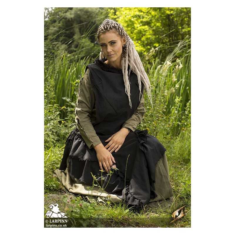 Epic Armoury’s Raven Dress is a sleeveless overdress with a polyester fur collar and large window armholes. Designed to be pulled on top of an inner slip such as a Peasant Dress or Basic Dress, the Raven Dress adds layering to the costume while still allowing you to show-off your entire costume. Made from comfortable medium cotton, and embellished with a tulle-like bottom hem, this dress is designed to be both comfortable and impressive.