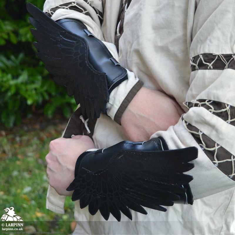 These hand painted bracers are made at Larp Inn, in the UK. These bracers are etched and hand dyed by us, providing beautiful quality and a unique finish on every pair. The thicker leather used on the top layer makes them perfect for 'Medium Armour Use' at most LARP Systems. However, the bracers work perfectly on their own. The calf suede finish on the inside is used for maximum comfort.