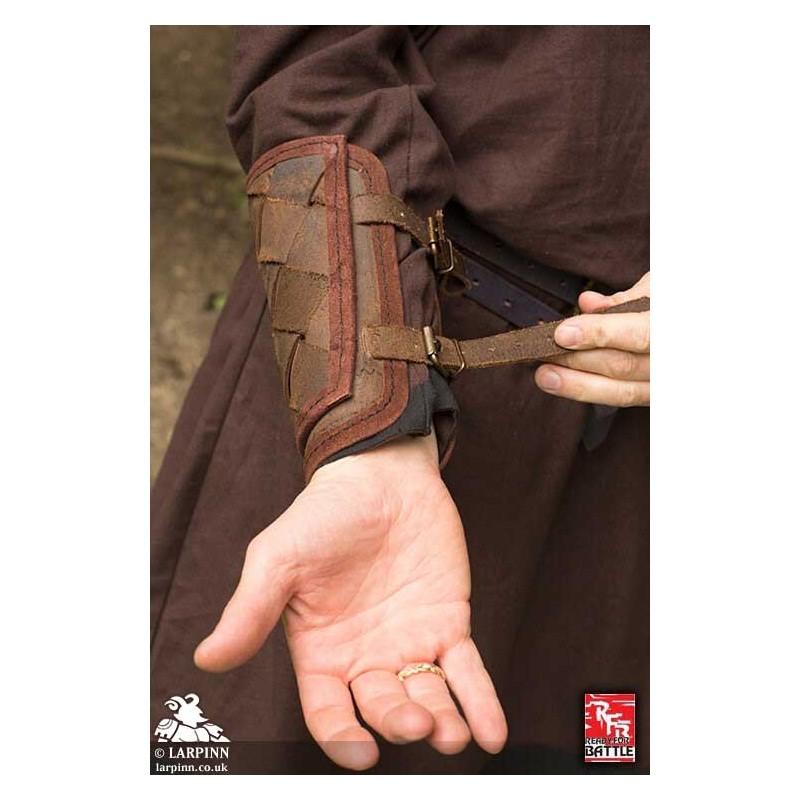 Epic Armoury’s Ready-for-Battle Viking Bracers are fancy leather bracers designed to protect the forearms. The armour is constructed from leather straps cut from chrome-tanned, split leather, and weaved together to create a beautiful design. The armour is secured to the arm by sturdy leather straps and brass buckles.