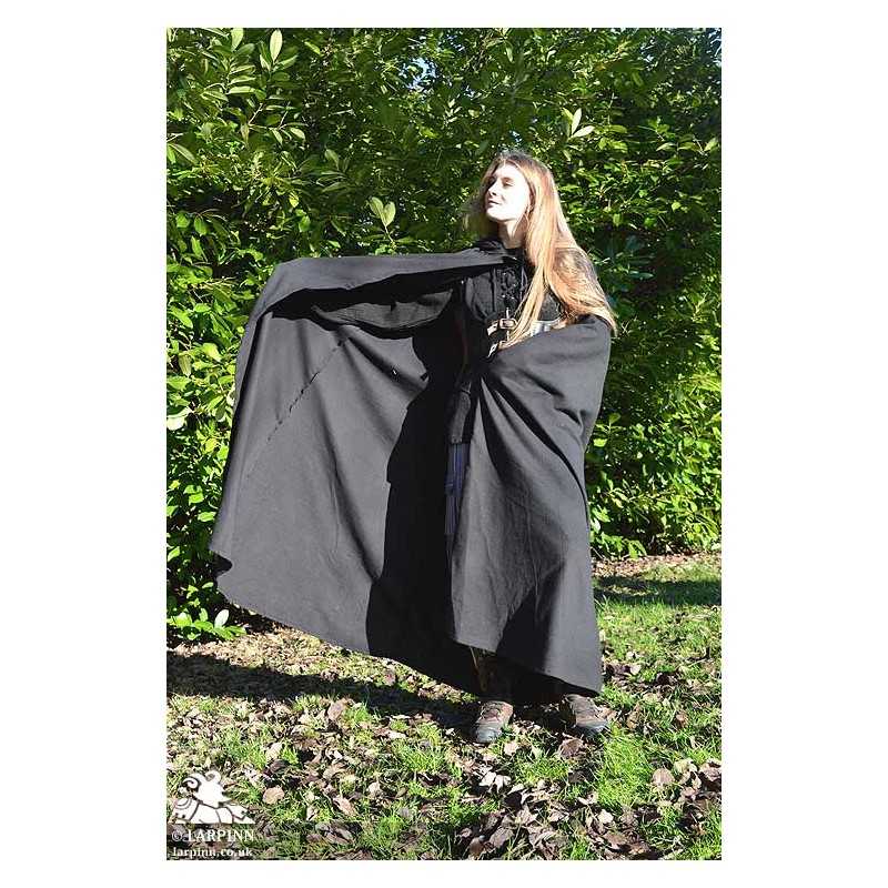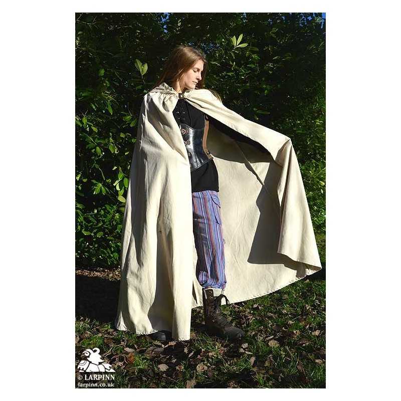 The Rogue Cloak offers two valuable features, it's economical and keeps you warm and dry. This cloak is made from a thick canvas like cotton that does an excellent job of keeping our cold weather. Every good costume has a cloak that can be added for extra warmth and gravitas; the Rogue Cloak is an excellent choice for LARP, theater and cosplay.