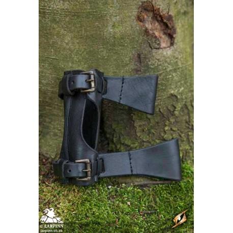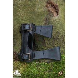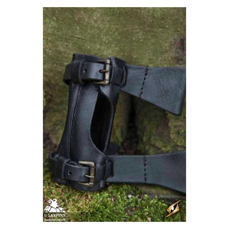 Epic Armoury’s Rogue Swordholder is a long leather frog designed to keep your weapon conveniently close. This frog is 15 cm long, open at both ends, and will accommodate a weapon up to 5 cm in diameter thanks to the adjustable brass buckle straps.