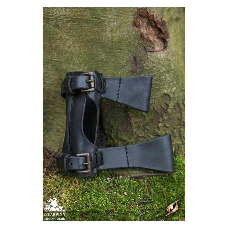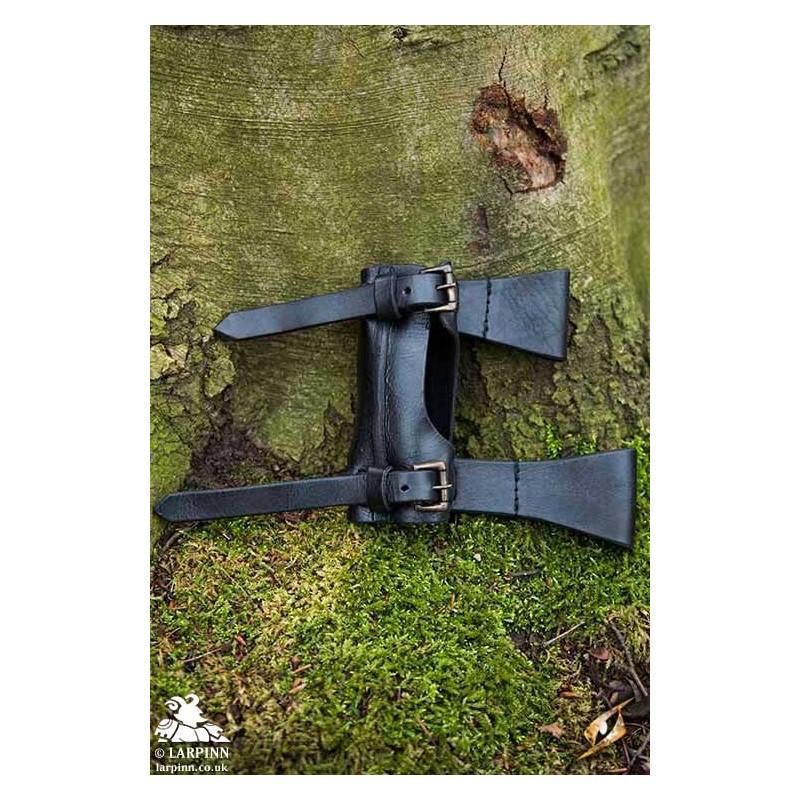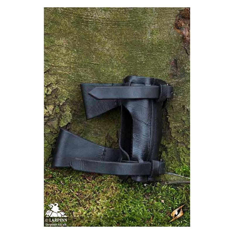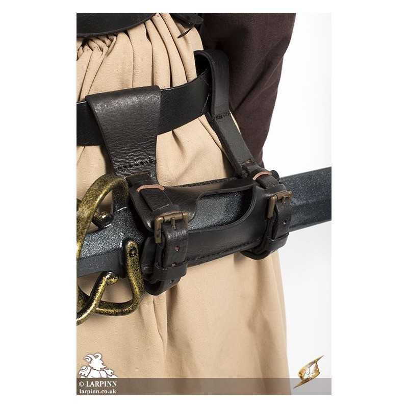 Match this Rogue Swordholder with any character you wish to equip--especially a well equipped rogue!--by securing the holder to your belt through the 6 cm belt loops. Made from vegetable-tanned full-grain leather and stitched with durable thread around the edges, this weapon holder is built to keep its shape and withstand the abuse of a LARP with regular leather care.