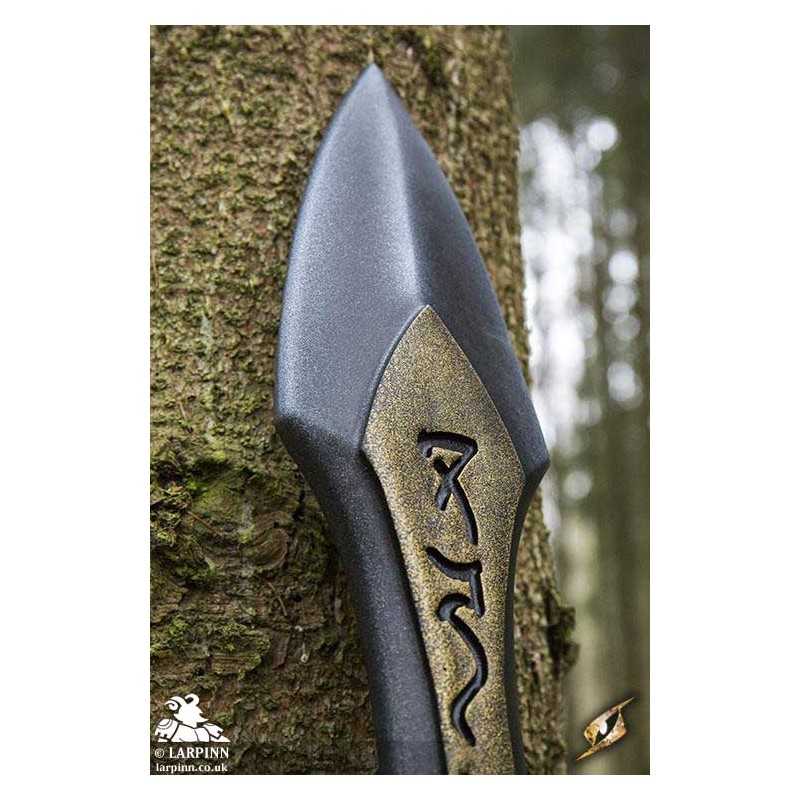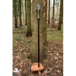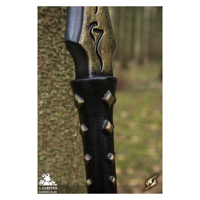 Epic Armoury’s Rune Spear is a 190 cm latex spear inspired by warlocks and clerics of the night. In the hands of the chaotic evil, this spear features a 47 cm long spearhead and 117 cm long staff. Hand painted and sculpted, the finished result is an intimidating fantasy weapon with an intricate double-edged spearhead. Sculpted runes along the spearhead and grommets around the crossguard and pommel gives this spear a particularly vicious character.