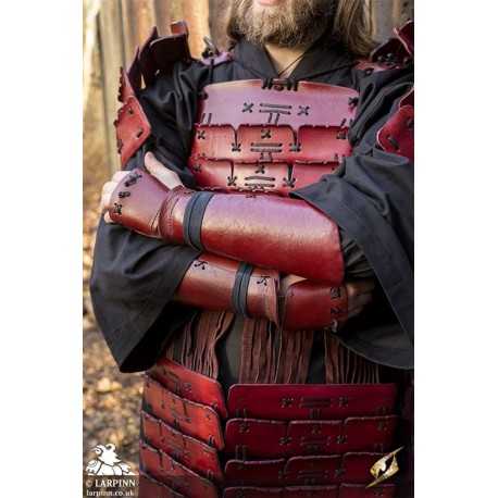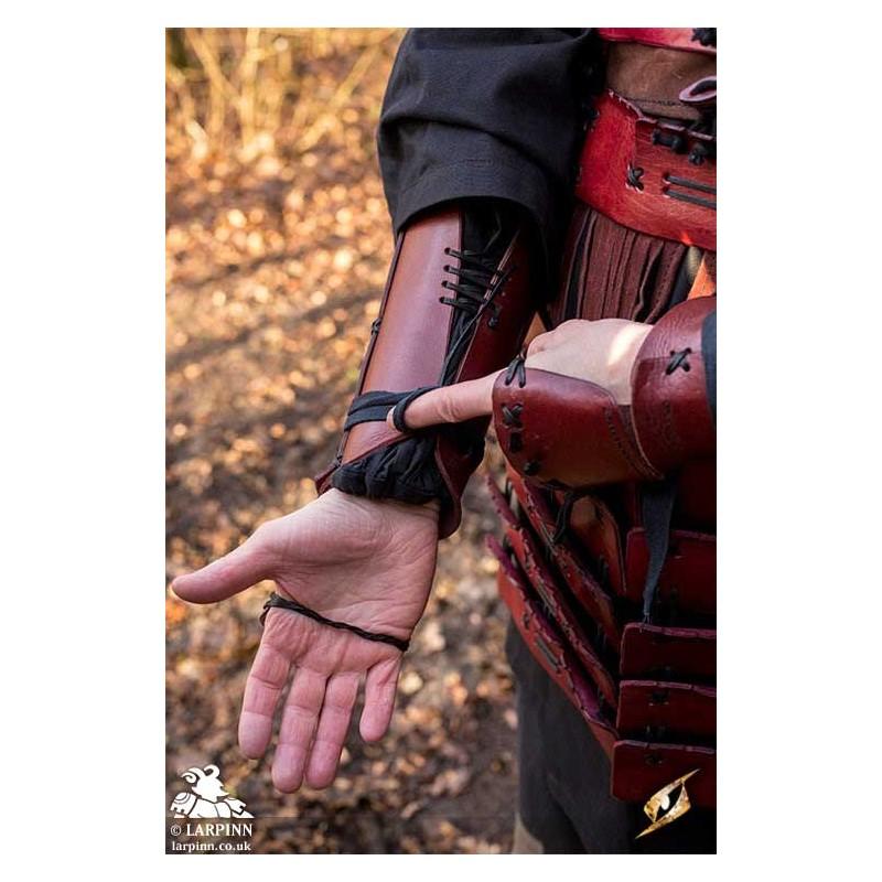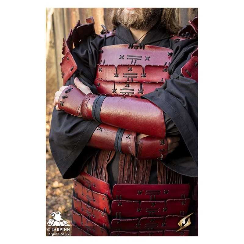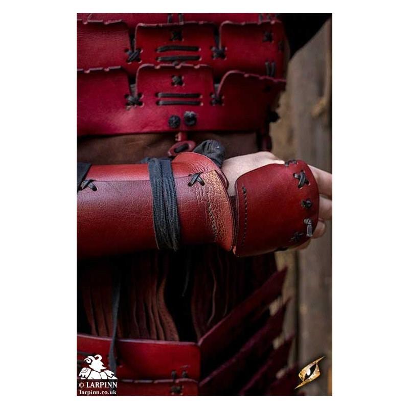 Comfortably secure the Samurai Bracers by lacing the leather cords on the underside and tightly wrap the heavy cotton fabric around the wrist. Attach the handguard by gripping the cotton cord around the knuckles. Inspired by Asian traditional armour, these bracers are perfectly matched with other products from Epic Armoury’s Asian Universe.